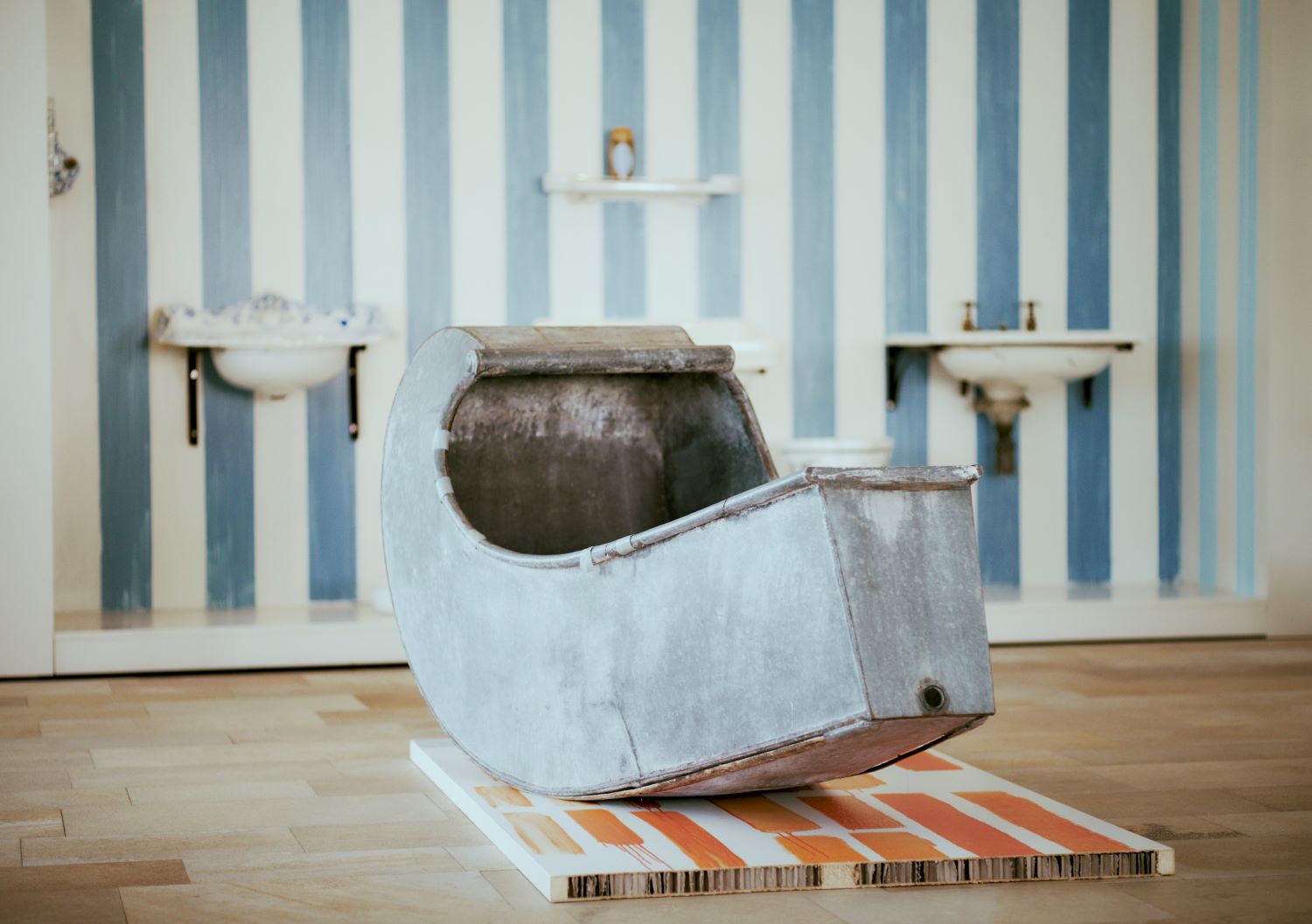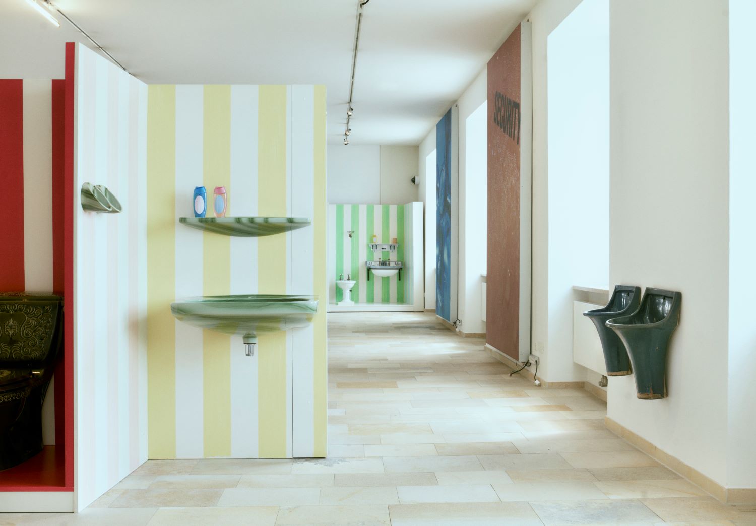 In the new staging and design of Klo & So, existing materials have been sustainably reused, and two contemporary artists invited to explore the intersection of art and design within the exhibition. Their hybrid artworks, created by Xenia Lesniewski and Gerhard Gutenberger, respond to this theme both conceptually and formally, operating at the crossroads of applied visual arts and design. These works remain as permanent installations in the museum, with a colour scheme executed by artist Nino Stelzl.
