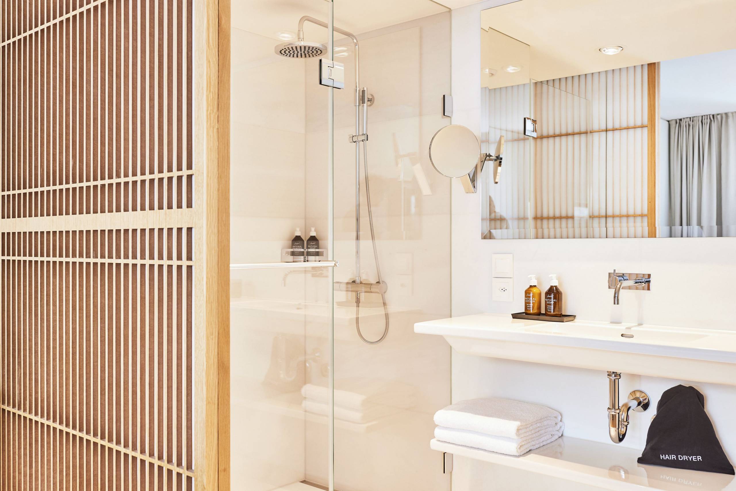 The bedrooms are very generously sized and with furnishings made of high-quality natural materials. The bathrooms are of a refined contemporary design featuring our Living Square washbasins and additional ceramic shelf radiating extraordinary elegance and aesthetics.