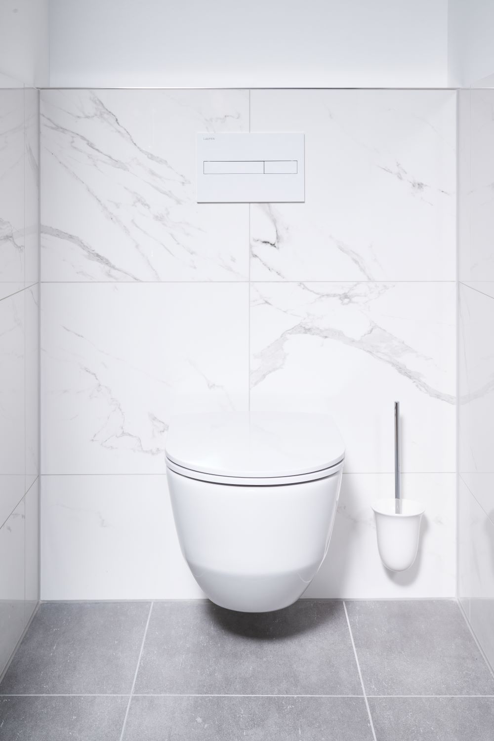 The LAUFEN LIS installation system has also enhanced the renovation process for the project by ensuring optimal integration between behind-the-wall components and visible design elements. This system maximizes bathroom space, providing greater freedom for creative design. Its water-saving dual-flush feature, activated via sleek, timeless white flush plates, epitomises efficiency and sustainability.