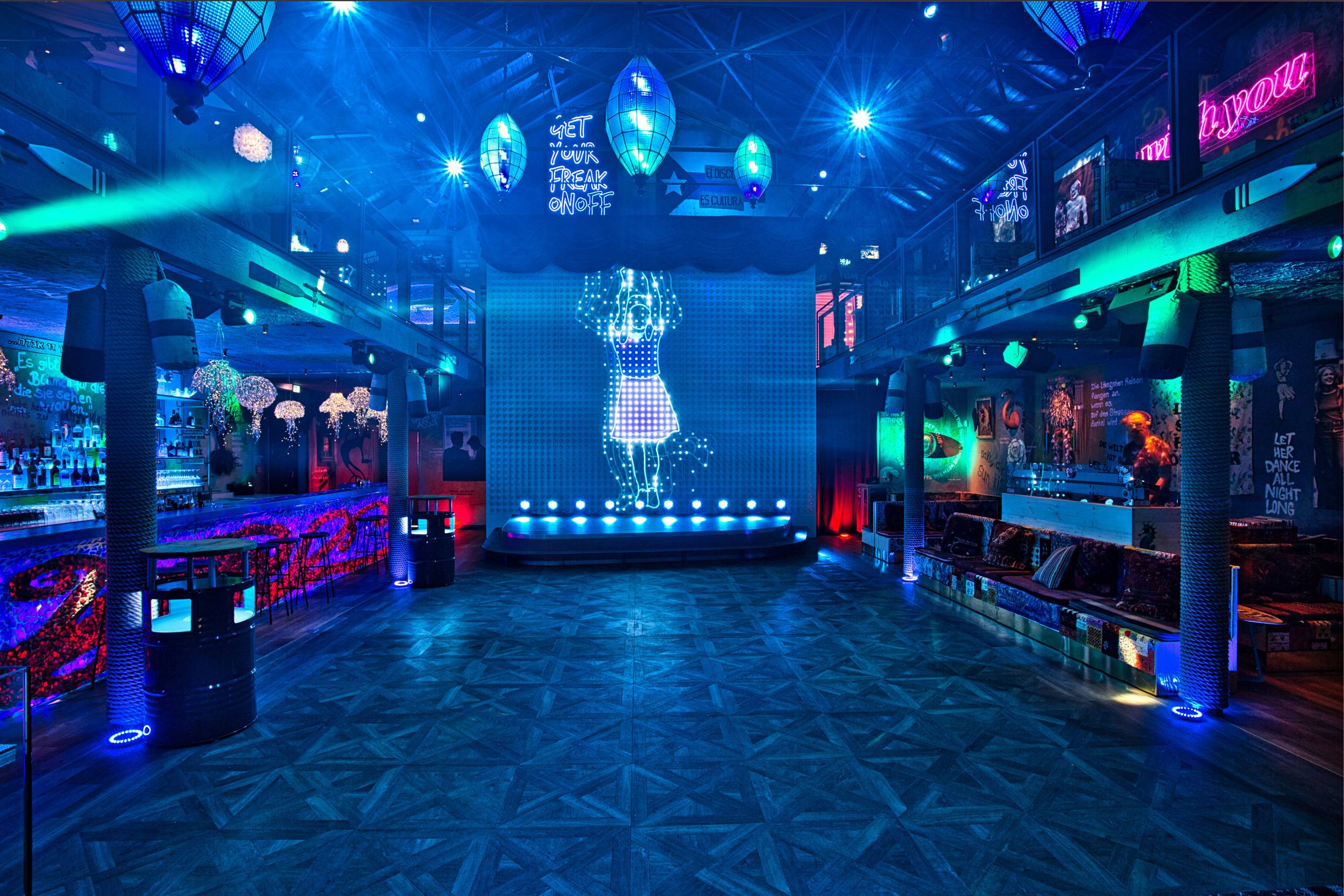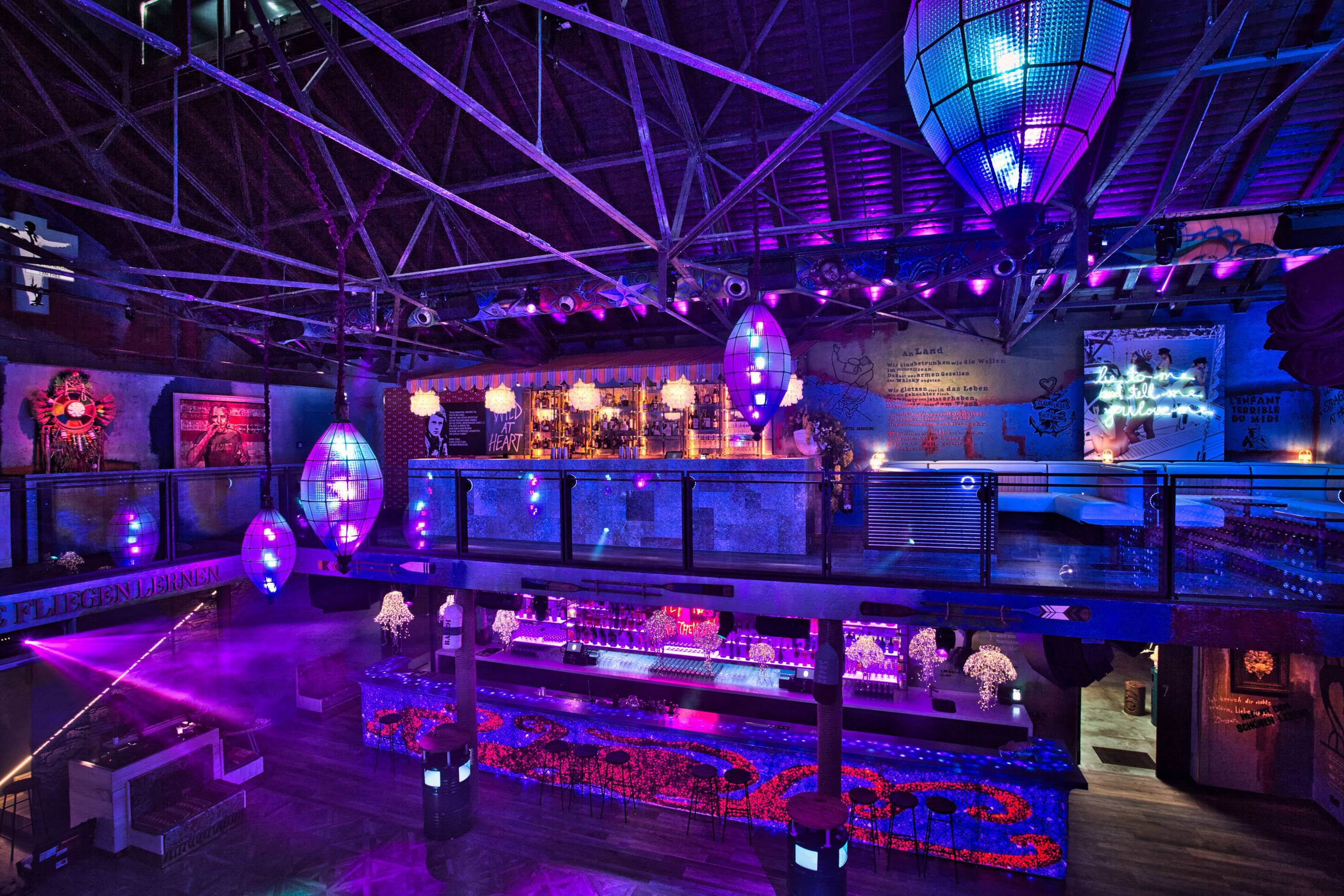 In the design process, the planning team went in search of special, unique decorative pieces and furniture that were either collected, designed or custom-made while travelling. The colour scheme is inspired by the sea and Mediterranean landscapes and is reflected in the blues and greens of the walls, which also feature artworks, graffiti and aphorisms from Charles Bukowski to the Scholl siblings. Everywhere in the club, countless playful details surprise. Wild, colourful and seemingly thrown together: “Every piece tells a story here, yet is part of a multi-sensory experience, which wants to ask questions and stimulate thought,” as Mr. Goldman explains his concept.