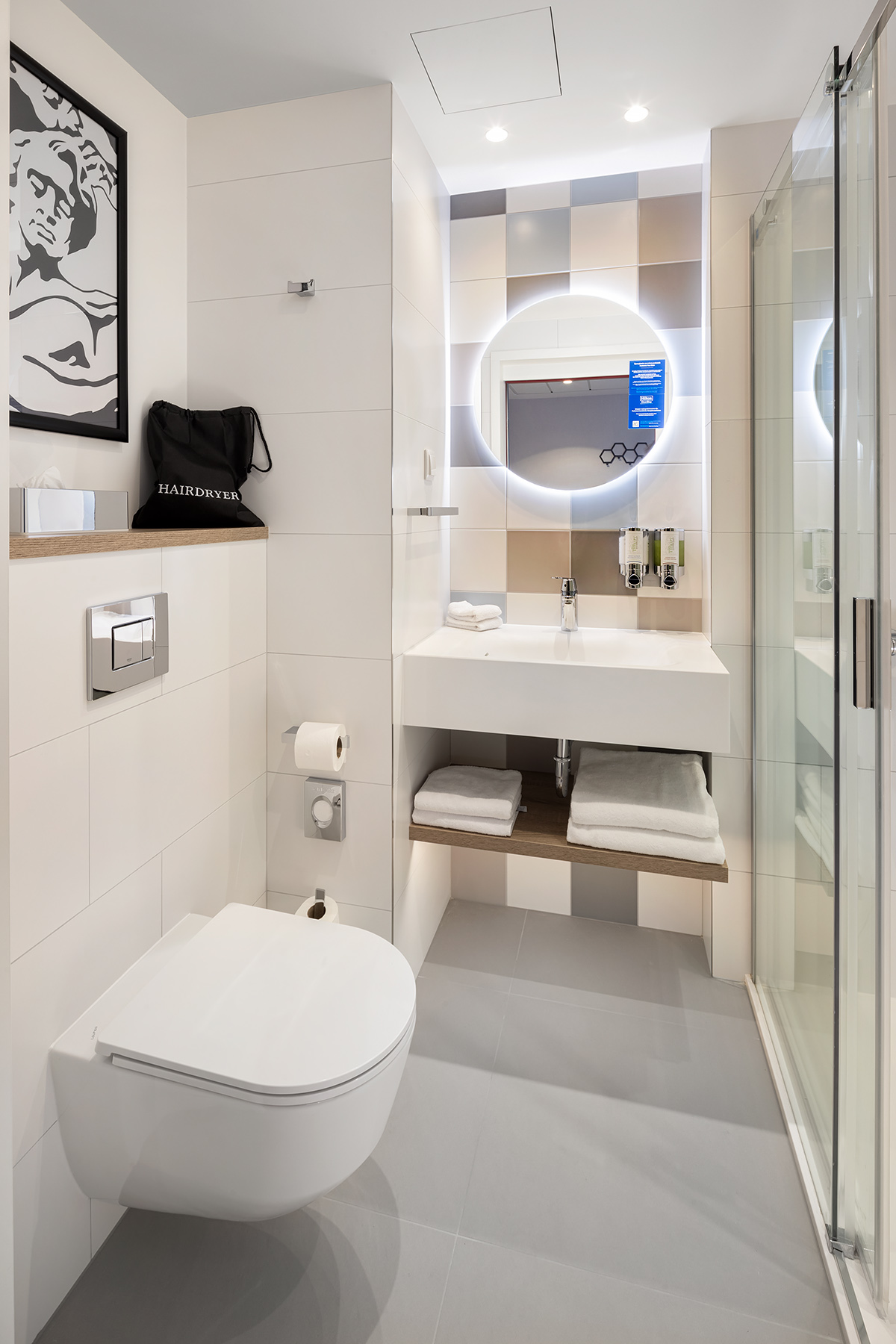 The interiors of the Hampton by Hilton Warsaw Reduta are a joyful interplay of colours and textures, a lively interpretation of the urban atmosphere. This contemporary design, inspired by mid-century style, is flourishing throughout the guestrooms, creating a space full of light and inspiration, echoed in the gorgeous bathrooms. Our Bespoke washbasins, specifically tailored for this hotel chain, along with the Laufen Pro toilets and shower trays confer an ambience of valued quality, style and individuality.