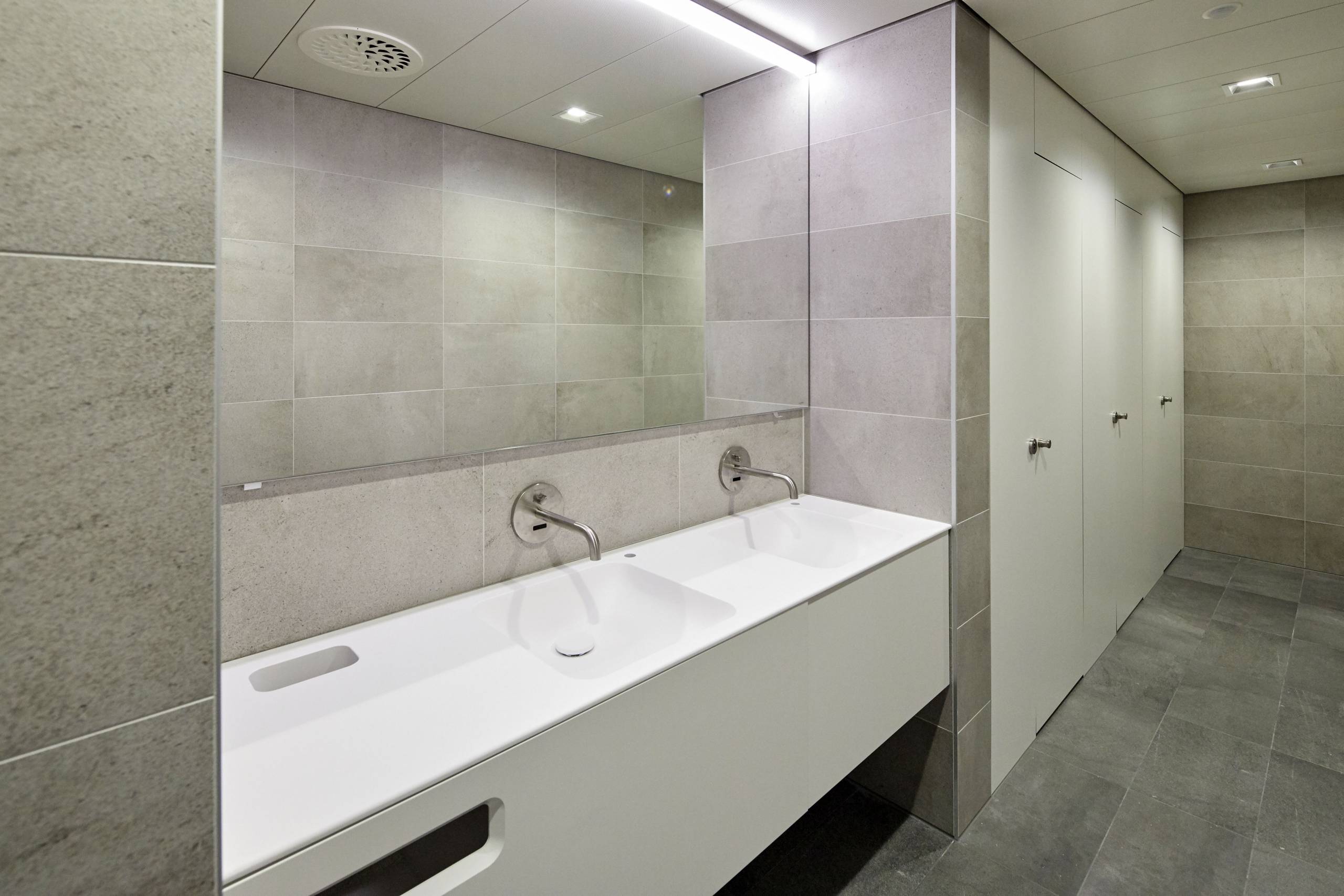 For the interior design of the numerous semi-public sanitary facilities, the client and the executing Swiss IttenBrechbühl bureau of architecture engaged Laufen. The Swiss bathroom equipment manufacturer is well known for its bespoke projects and as a partner for made-to-measure individual bathroom solutions.