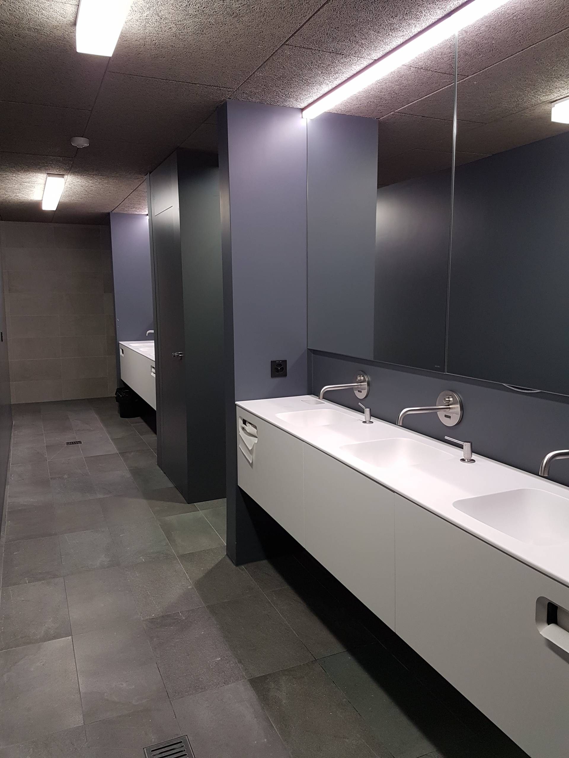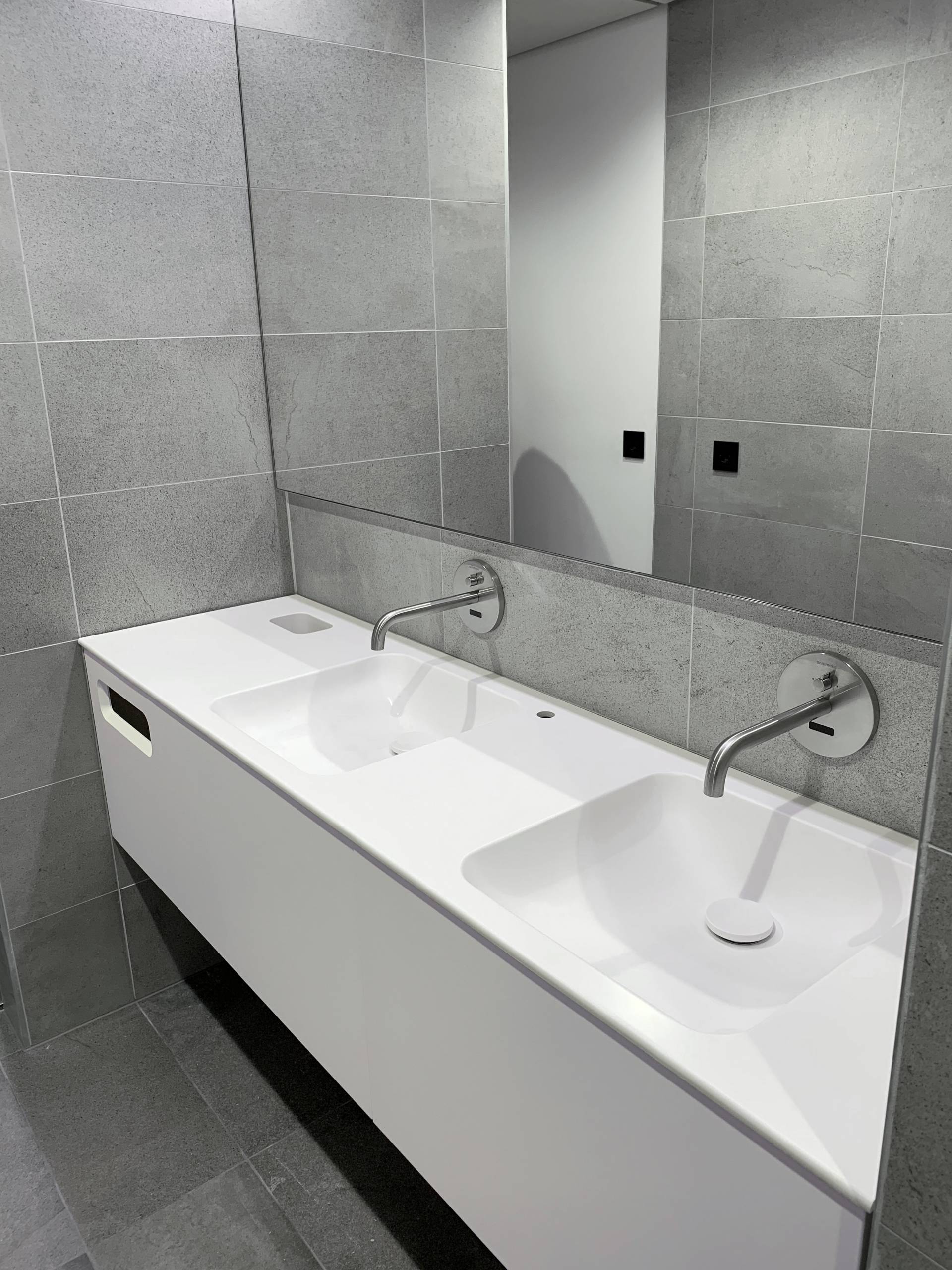 Laufen is installing a washbasin solution specially designed and manufactured for this project at the new Scott Sports building. The development process for the washbasins was guided by two basic principles: functionality and design. “In this project, a major concern on the part of the client was the clean, puristic design of the washbasins. The customised solution also allowed us to integrate soap and paper towel dispensers in the washbasins, thus saving us the installation of additional wall fixtures”, explains Tima Kamberi, responsible for the project at IttenBrechbühl.