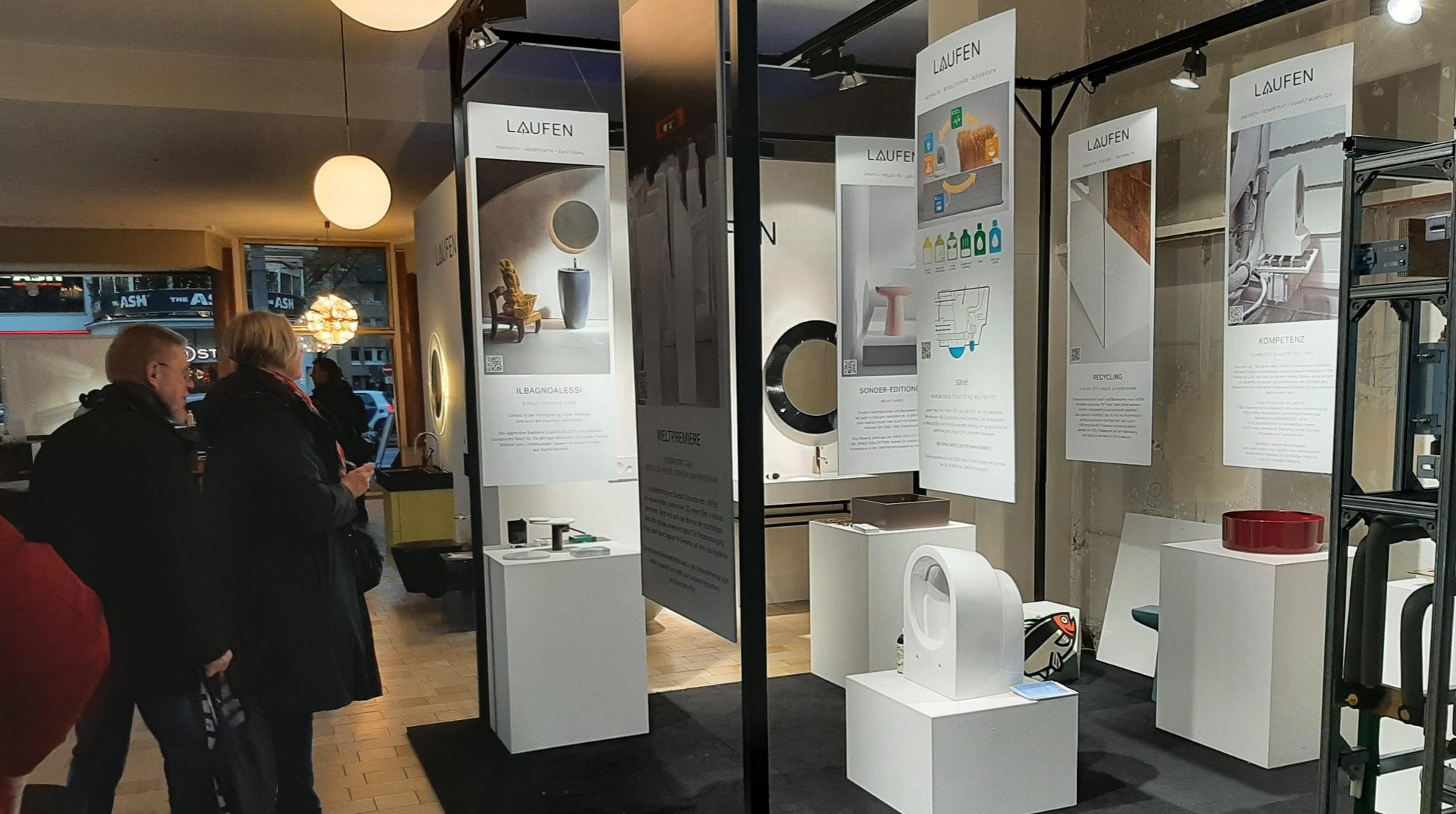 Under the roof of the Moeller fabric pavilion, LAUFEN, Alape an Dallmer jointly present inspiring bathroom solutions during PASSAGEN 2024.