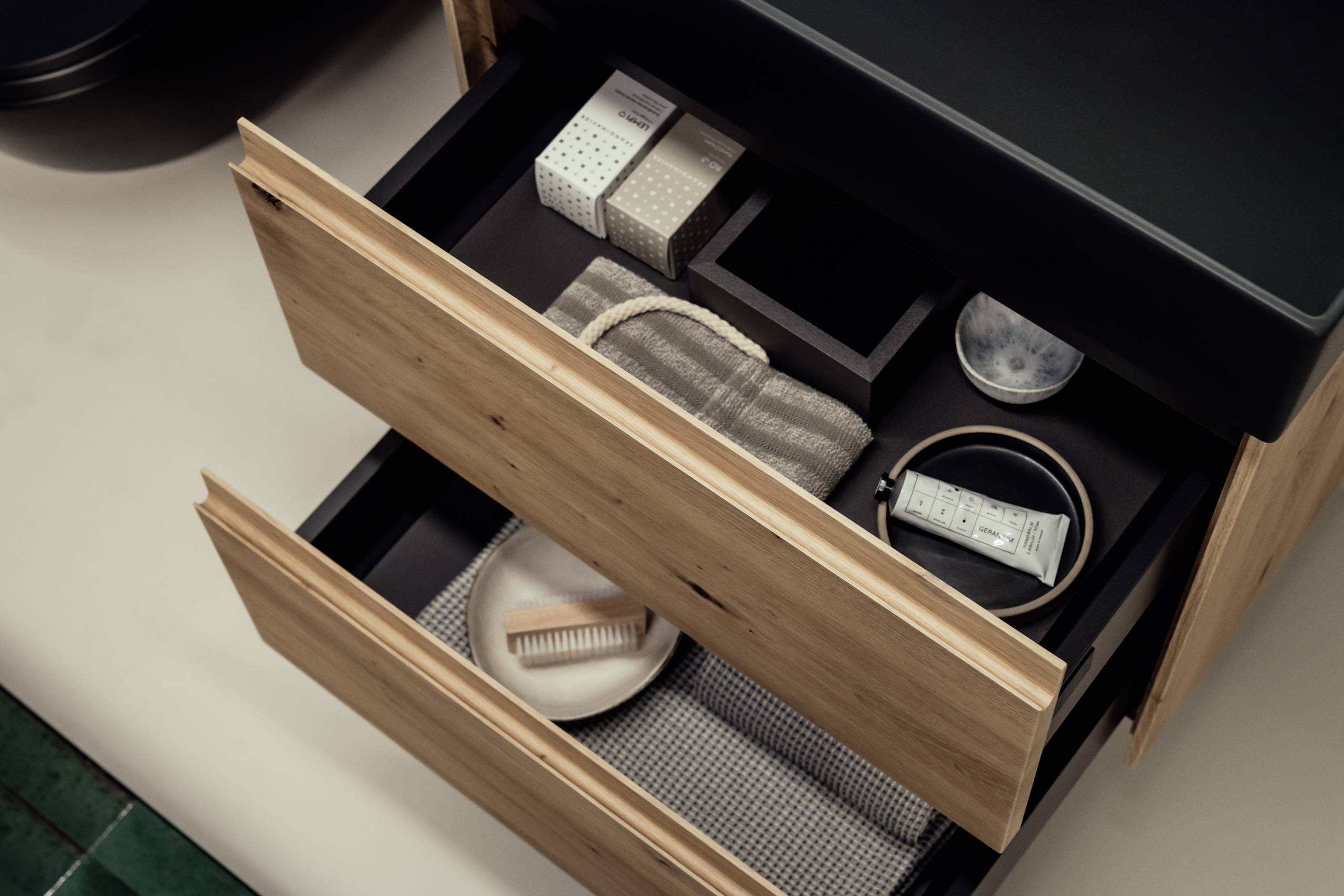 LANI features shapes and sizes of various kinds, from drawer units with a length from 600 to 1200 mm to long and thin storage units, up to 1650 mm in height.