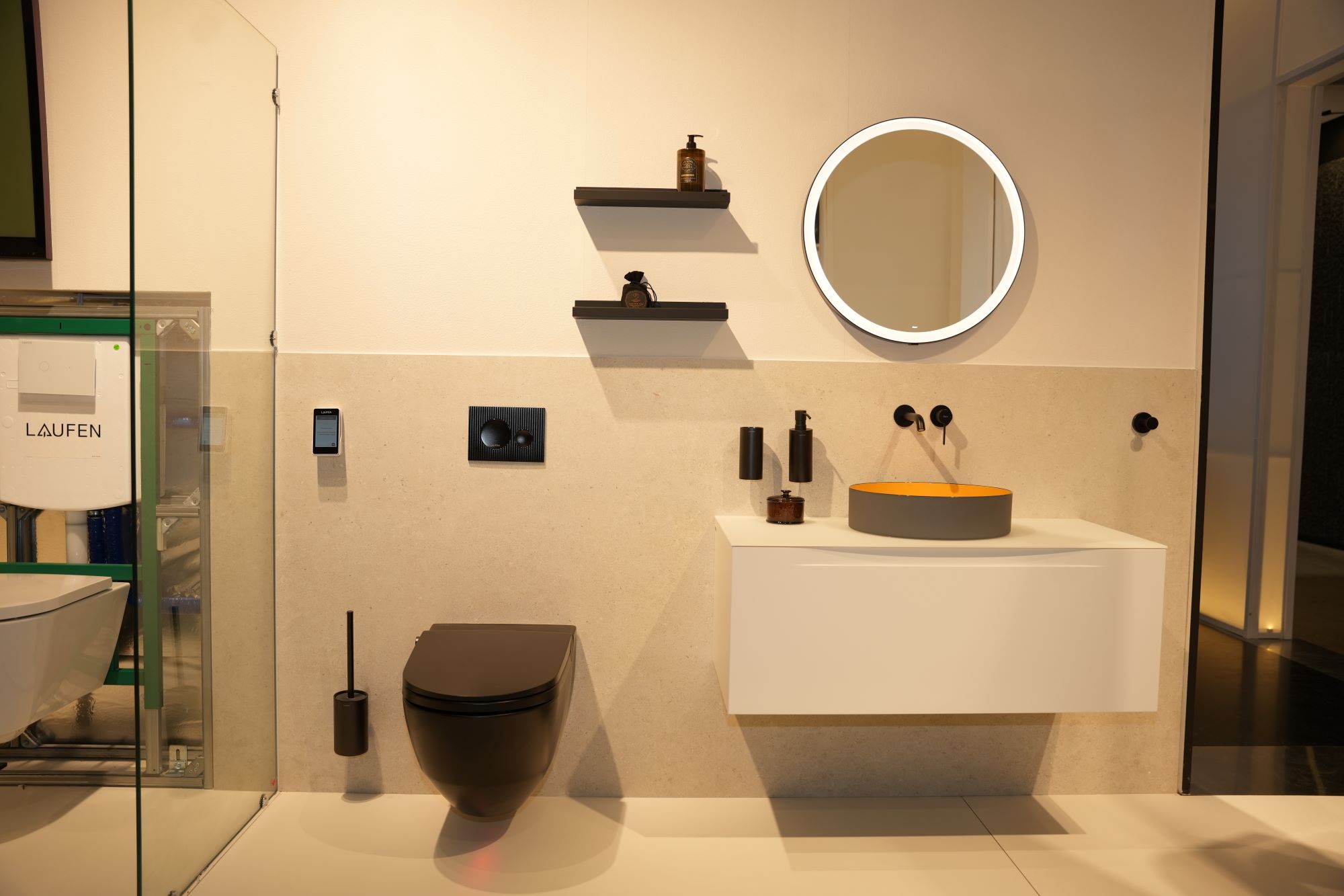 The exhibition featured THE NEW CLASSIC by Marcel Wanders, VOLTA designed by Yves Behar, premium washplaces with ARUN furniture, glazed steel washbasins, CLEANET RIVA and innovative concealed installation systems — each reflecting LAUFEN’s mastery of form and its commitment to Swiss precision and innovation.