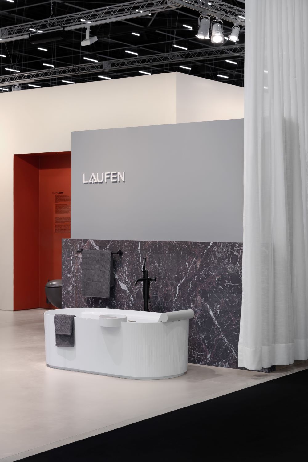 At the fair, LAUFEN presented a dedicated stand conceived as an architectural environment rather than a traditional product display. The installation invited visitors to explore the brand’s latest collections through a spatial experience designed to slow the pace of the exhibition and create a moment of calm within the dynamic context of the fair.