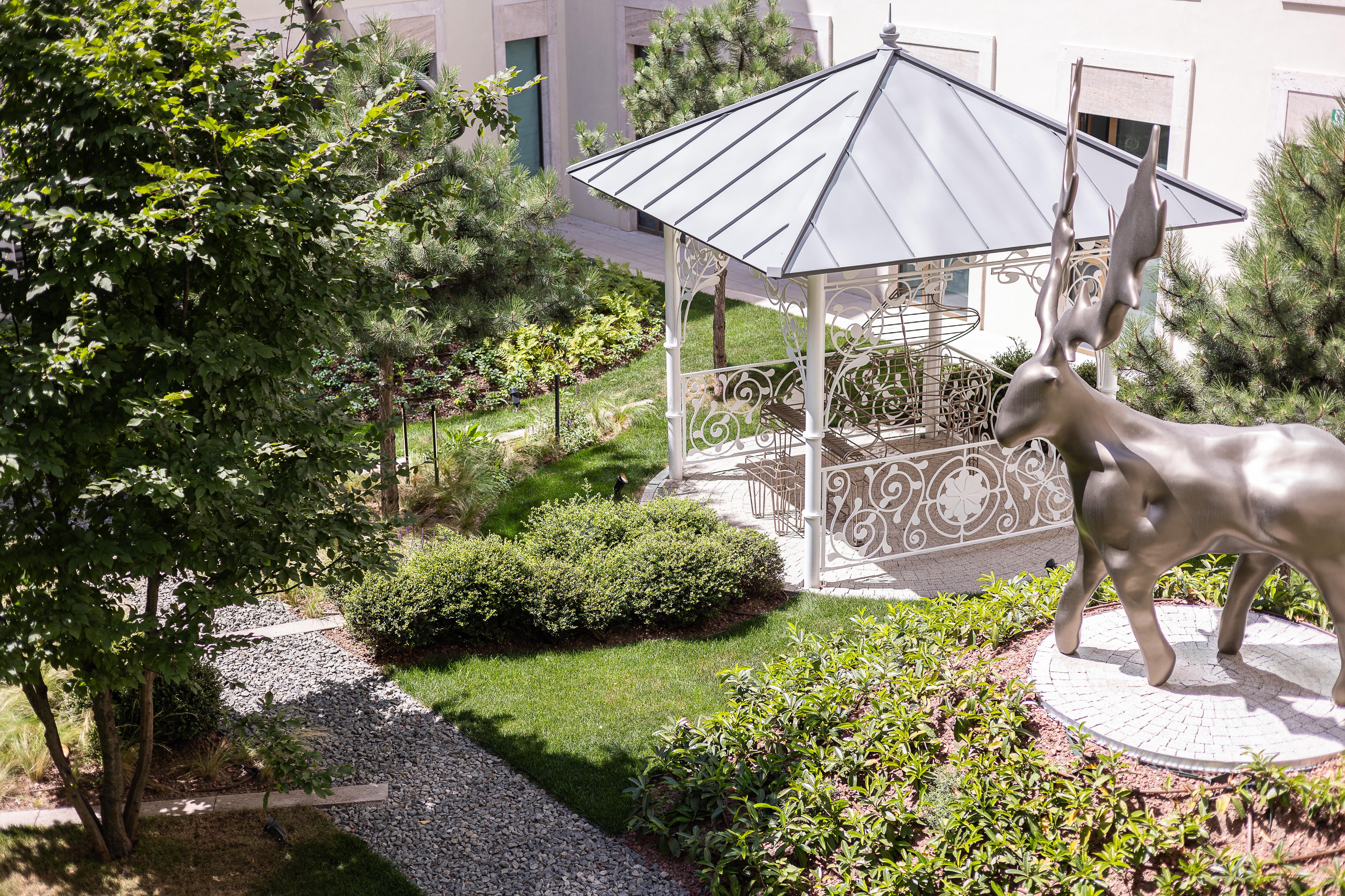 The hotel design, created by the visionary Marcel Wanders Studio, captures the essence of Hungarian folklore, weaving whimsical elements into the historical fabric of the building. Wanders, renowned for his imaginative and unconventional approach, has created a space that is both enchanting and luxurious. The interiors are a blend of modern elegance and playful design, with patterns inspired by Hungarian mythology and flora, such as poppies and tulips, set against a backdrop of cool colours and striking architectural details.