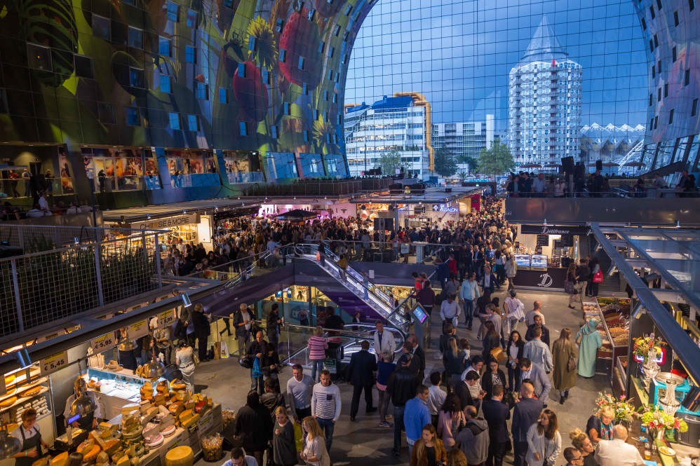 Examples of urban living don’t come much greater than Markthal Rotterdam, an iconic new marketplace with apartments above. The first of its kind in Europe, Markthal Rotterdam integrates living and shopping in a unique way; this hybrid between market hall and housing is designed in a distinctive horseshoe shaped arch, consisting of housing from the third to the eleventh floor.