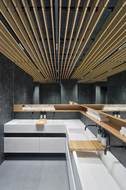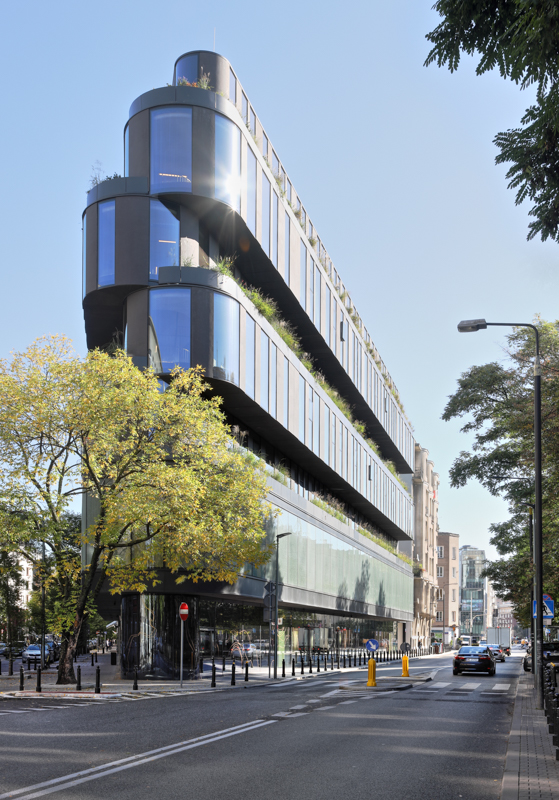 This 5-star hotel, a V-shaped seven-storey building, encompasses the former existing Hotel Rialto – an historic tenement house dating back to 1920s – and a new building, both featuring a total of 120 spacious rooms spanning from a classic to a modern and minimalistic style. The structure made of glass, stone and green terraces are aligned with the elegant, natural and light-filled interior with Japanese detailing.