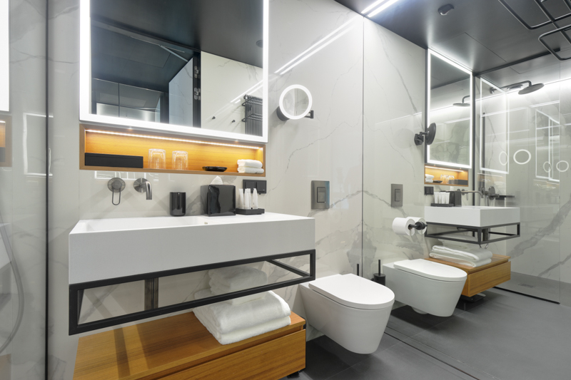 Laufen’s Bespoke washbasins and shower trays are individually tailored and attuned with the Laufen Pro wall hung toilets. This reflection of noble elegance and original design, matching the style of this beyond compare hotel, leads the guests to an unforgettable experience of joy.