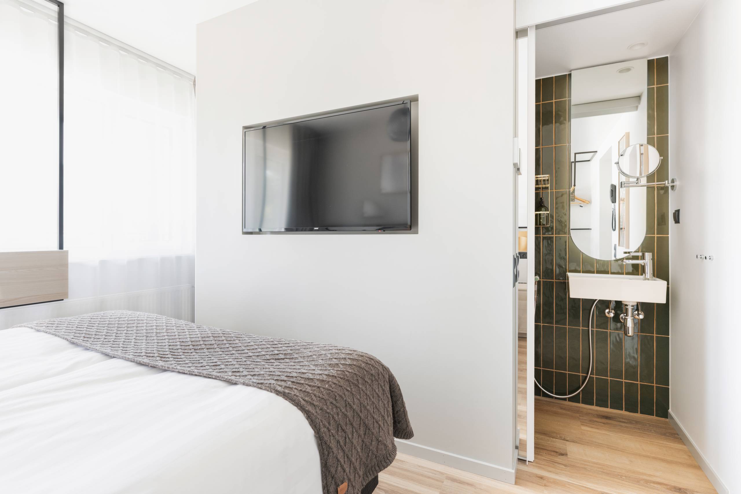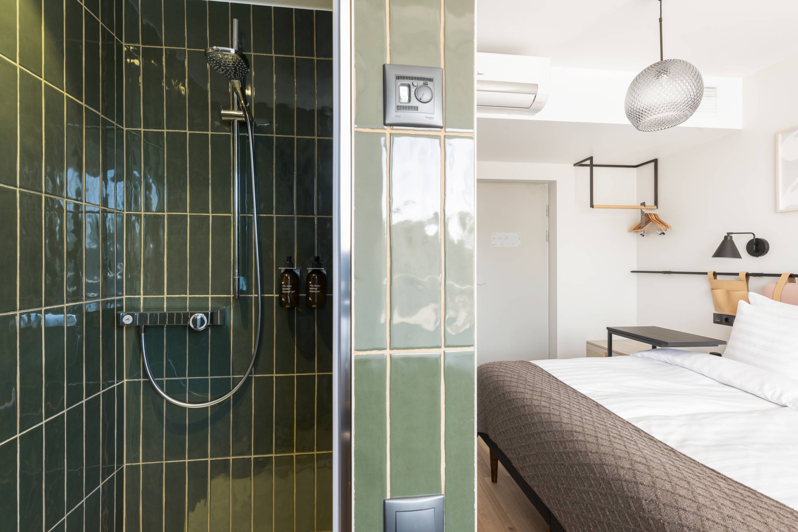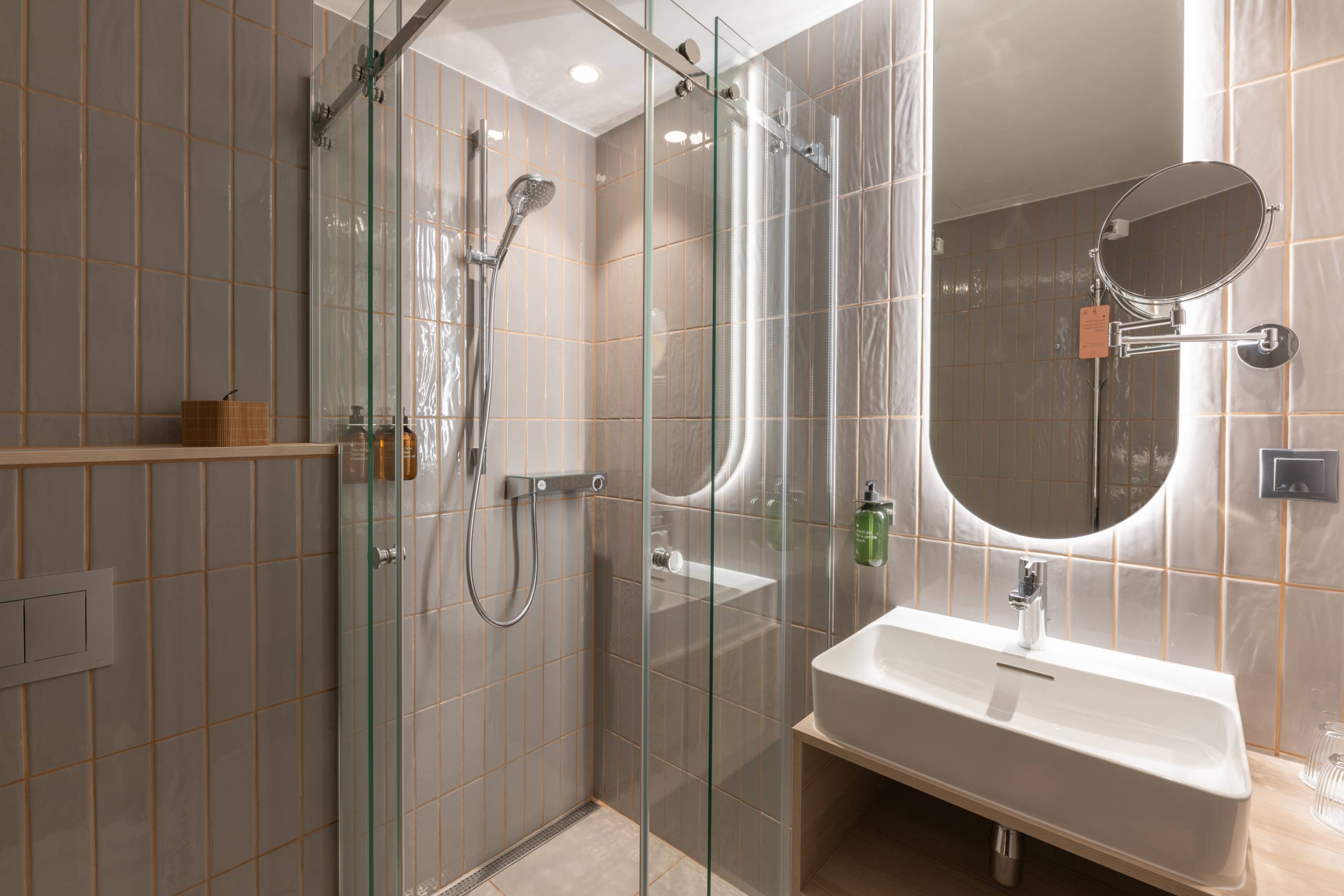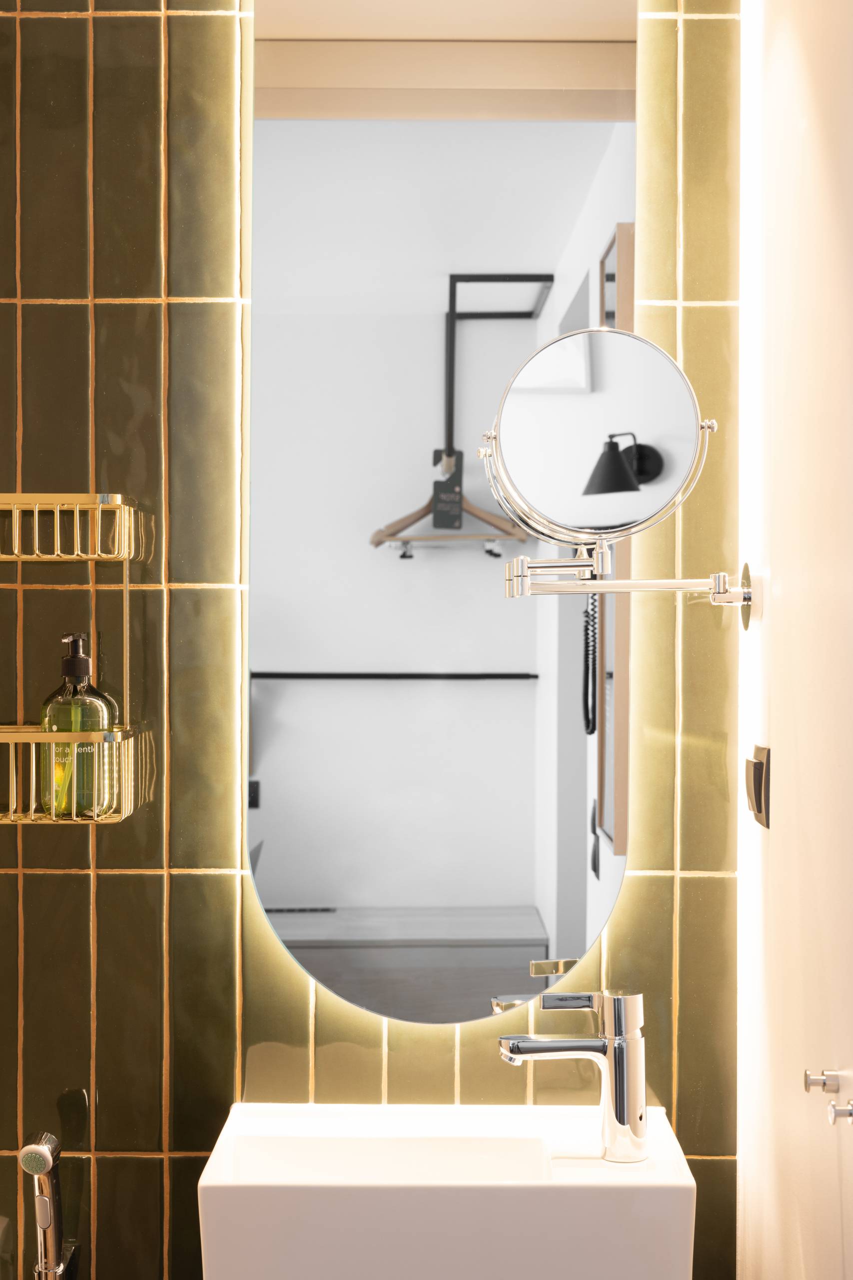 The building’s interiors are seamlessly designed to immerse guests in the surroundings of this cozy place, decorated in a modern and elegant way, thus expressing harmony and providing guests with a relaxation sense of home. The thoughtful layout of the rooms makes them spacious and comfortable despite the compact area. The traditional solid furniture has been replaced with metal structures that meet the practical needs of the guests and give the space a loftier feel.
