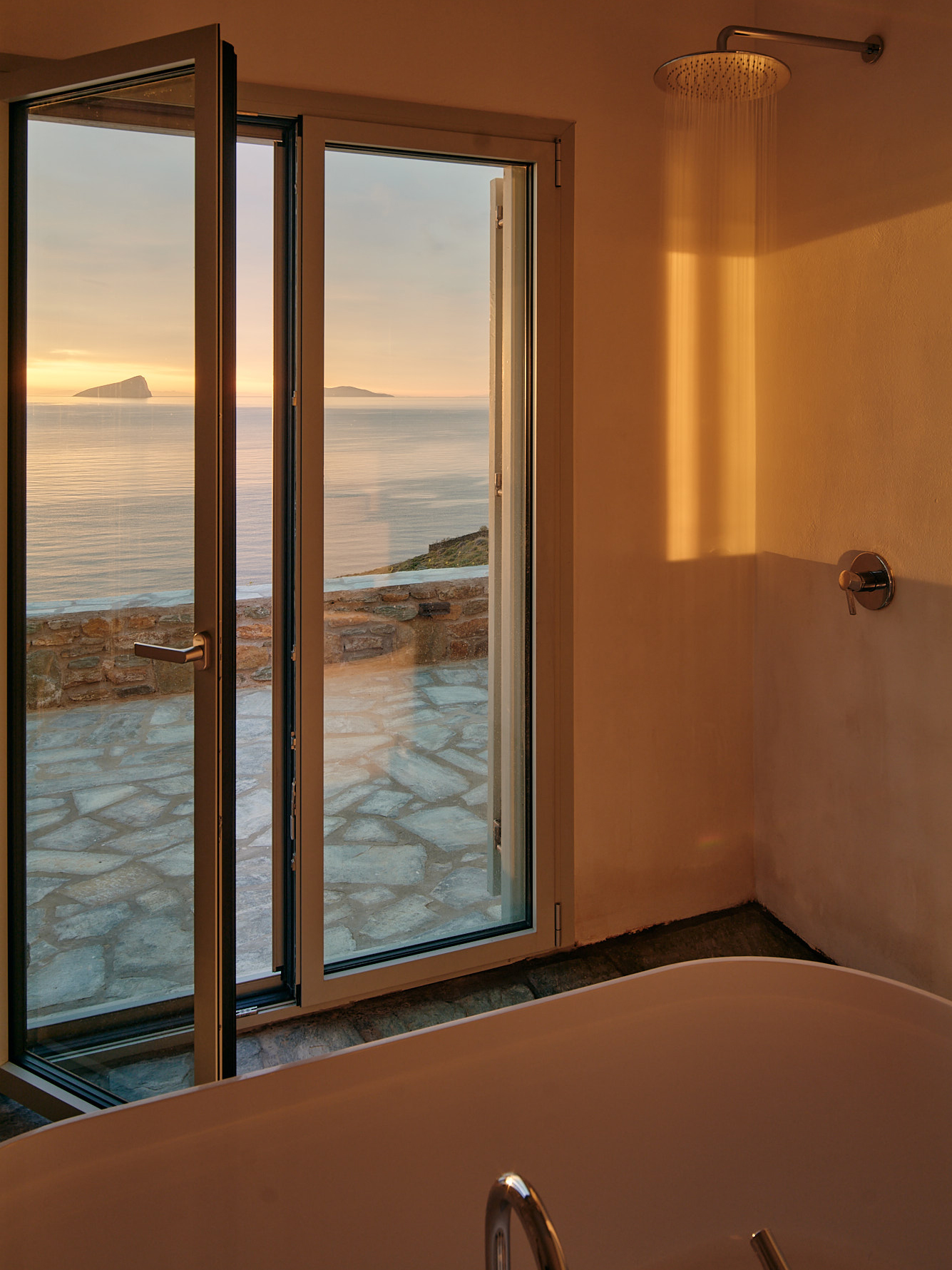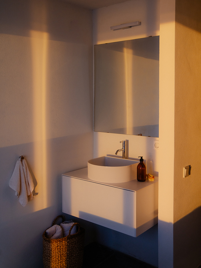 Piperi House’s commitment to elegance extends to its bathroom spaces, fitted with LAUFEN products. Crafted to seamlessly blend with the Cycladic aesthetic, LAUFEN bathroom fixtures add a touch of sophistication and functionality to the interior. With impeccable attention to detail, the bathrooms complement the architectural design, creating a harmonious flow throughout the entire retreat.
