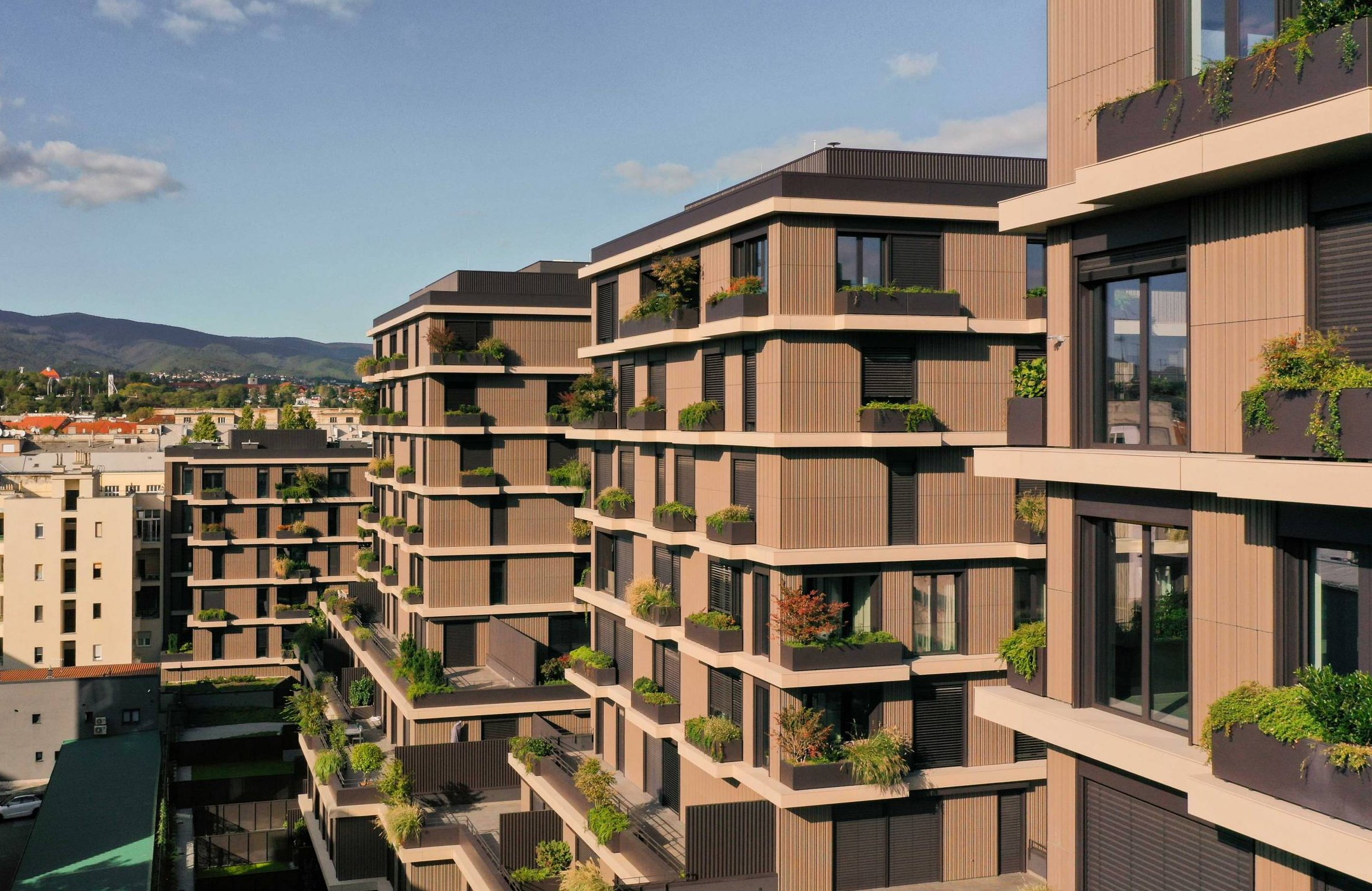 Guided by the vision to provide exceptional projects in terms of quality, architectural value and sustainability, developer VMD Model has been making a significant impact on the capital of Croatia. Park Kneževa has created a green oasis in this once neglected and devasted factory district of Zagreb near the railway lines. The exceptional amount of greenery that surrounds the residential and commercial spaces, at all levels, provides a positive environment for living and is the main feature of this project.