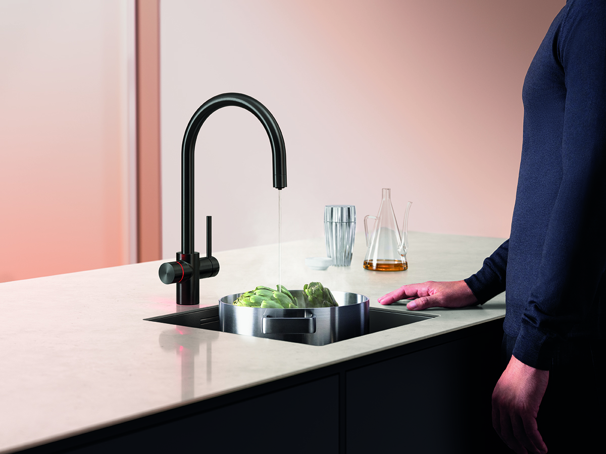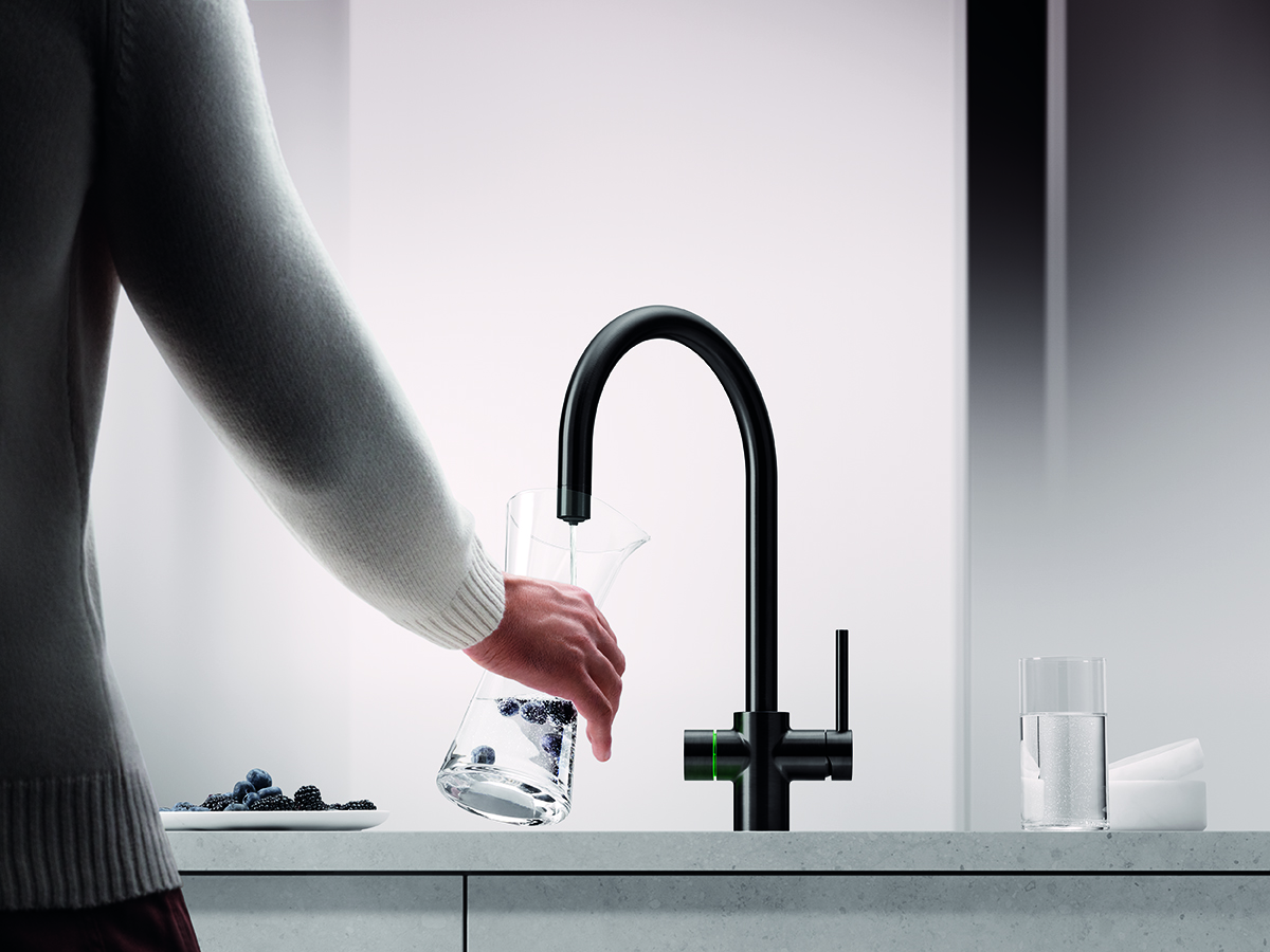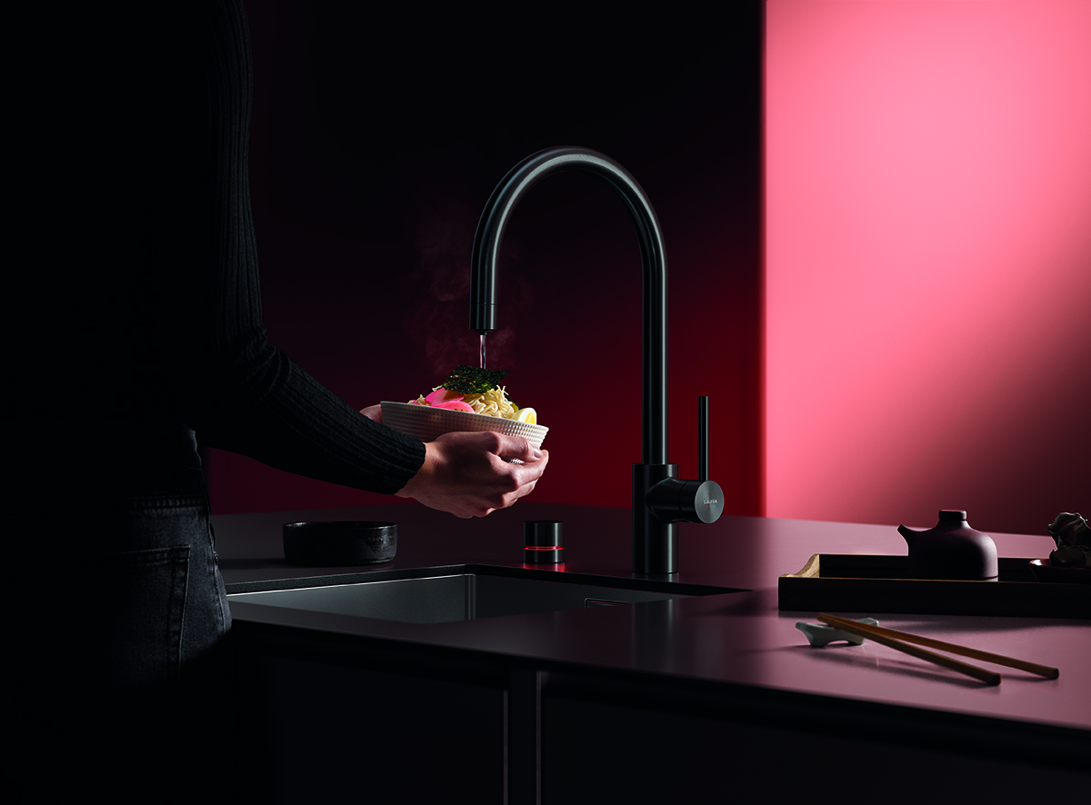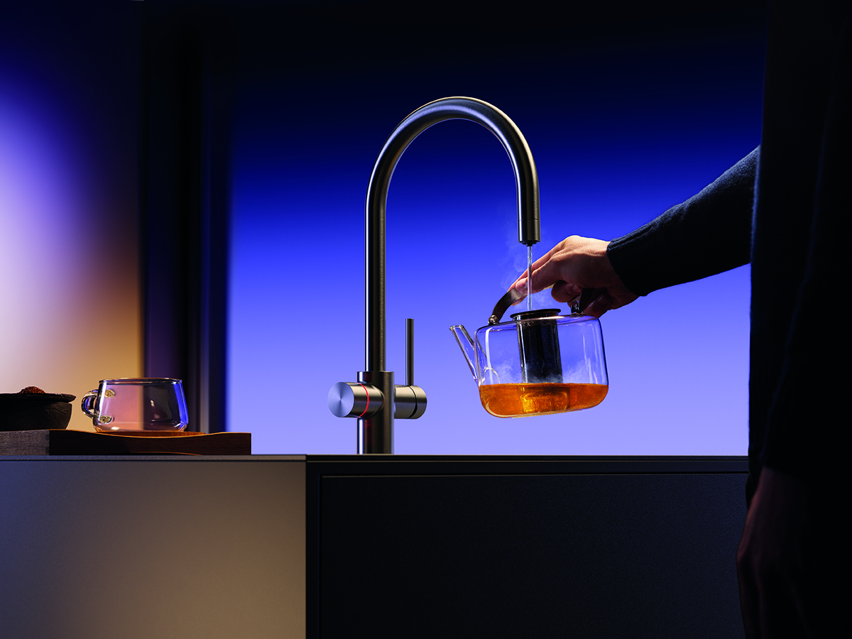 At the push of a button, the faucet provides filtered cold and sparkling water, as well as hot water in three temperature settings (85°C, 92°C, and 96°C) – all from a single spout. Thanks to the compact system box and smart installation, VARA can be easily integrated into almost any kitchen setup. Two versions – an all-in-one model with all functions or a hot-water only model – along with finishes in stainless steel or brushed PVD titanium black, offer flexibility for retailers, installers, and planners.
