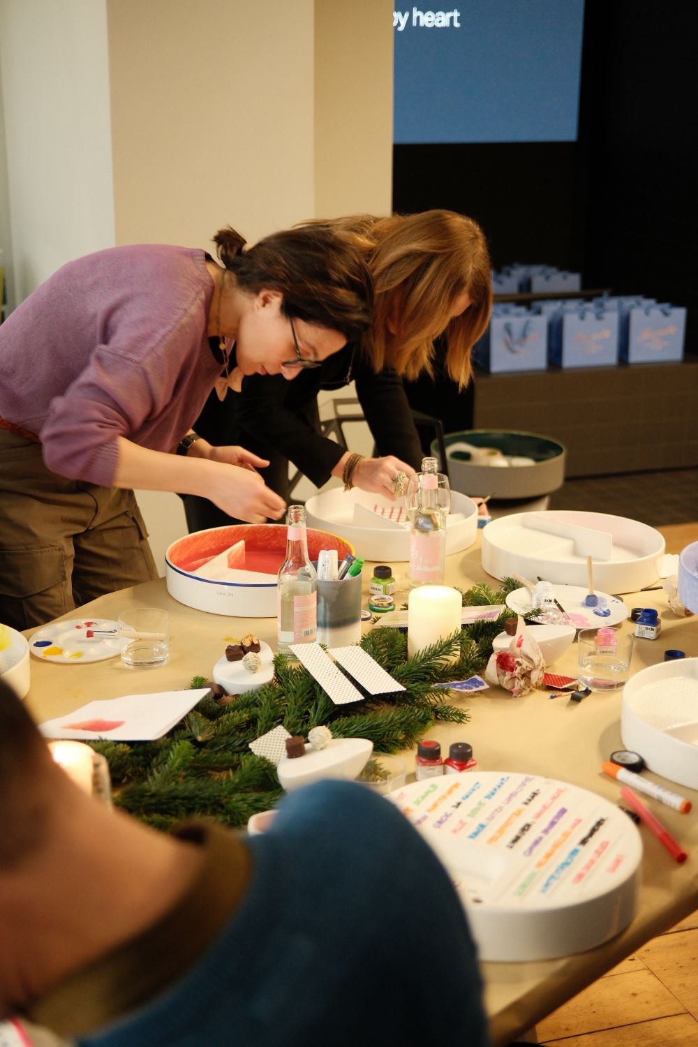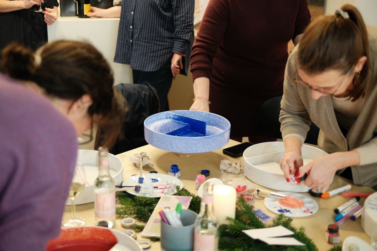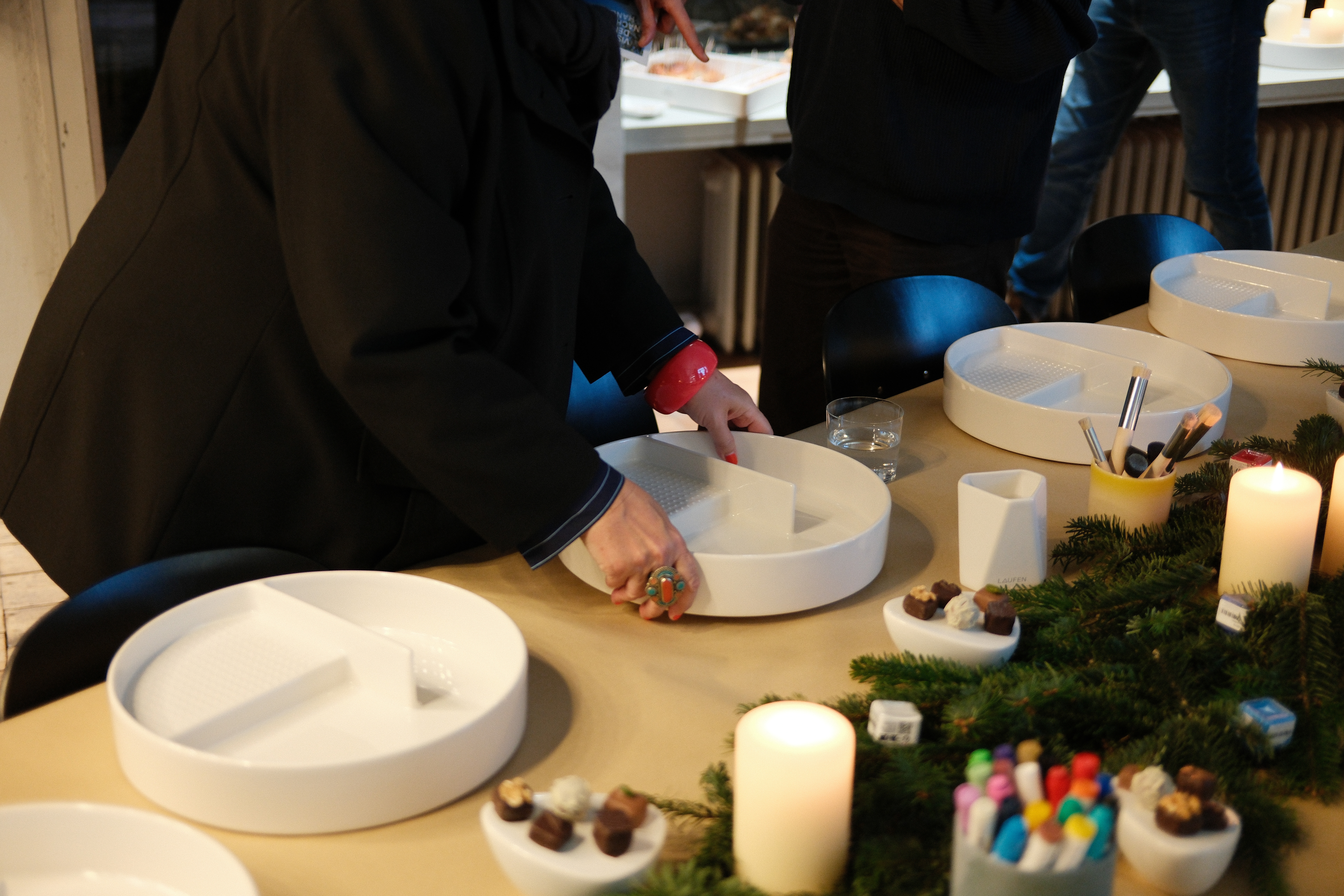 Der Abend bot den Gästen nicht nur die Möglichkeit, aktiv zu gestalten, sondern auch in den Dialog über Material, Designprozesse und Nachhaltigkeit einzutreten. Die Atmosphäre war geprägt von Fokus, Inspiration und kollegialem Austausch, begleitet von einem subtilen weihnachtlichen Rahmen, der den kreativen Prozess unterstrich.