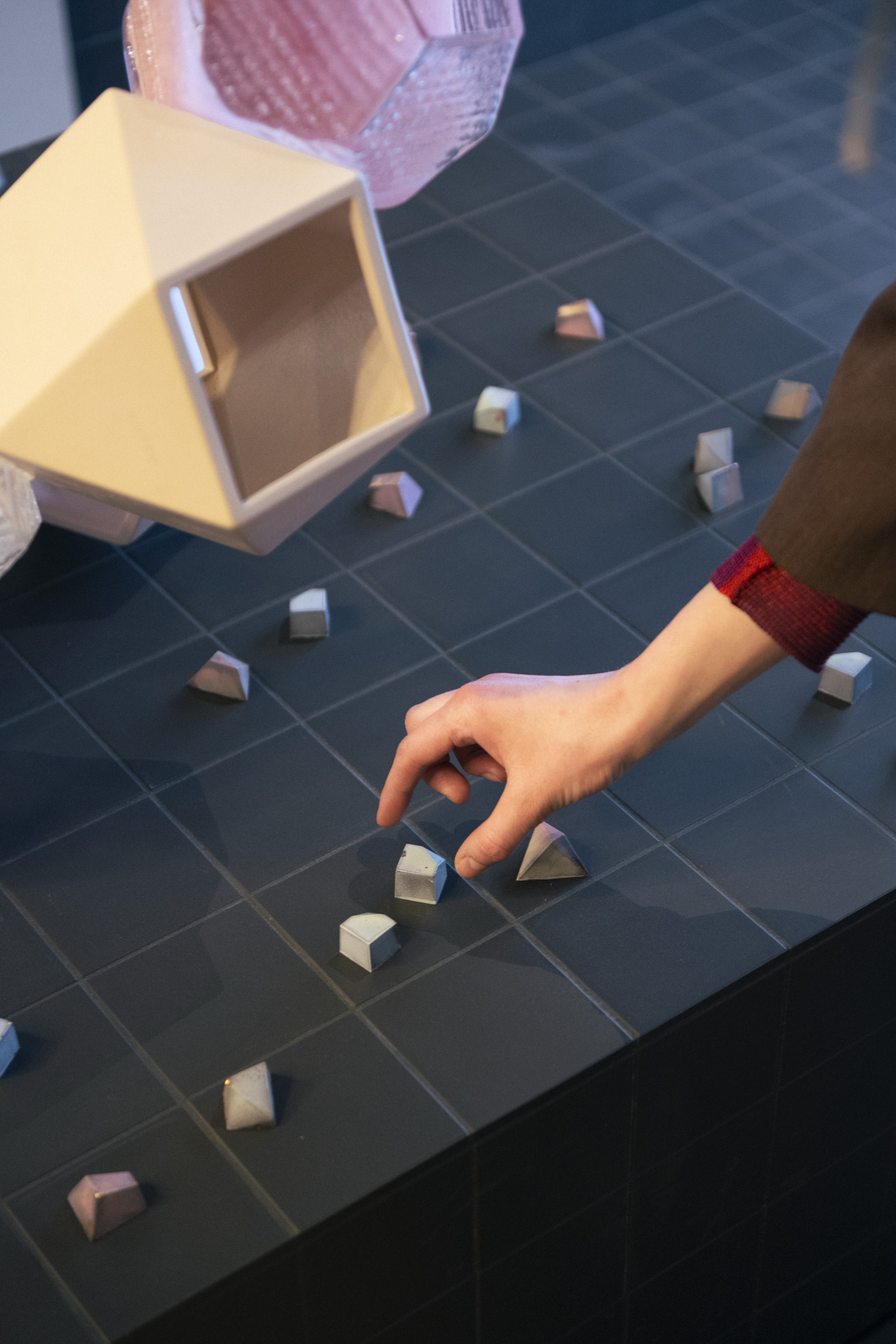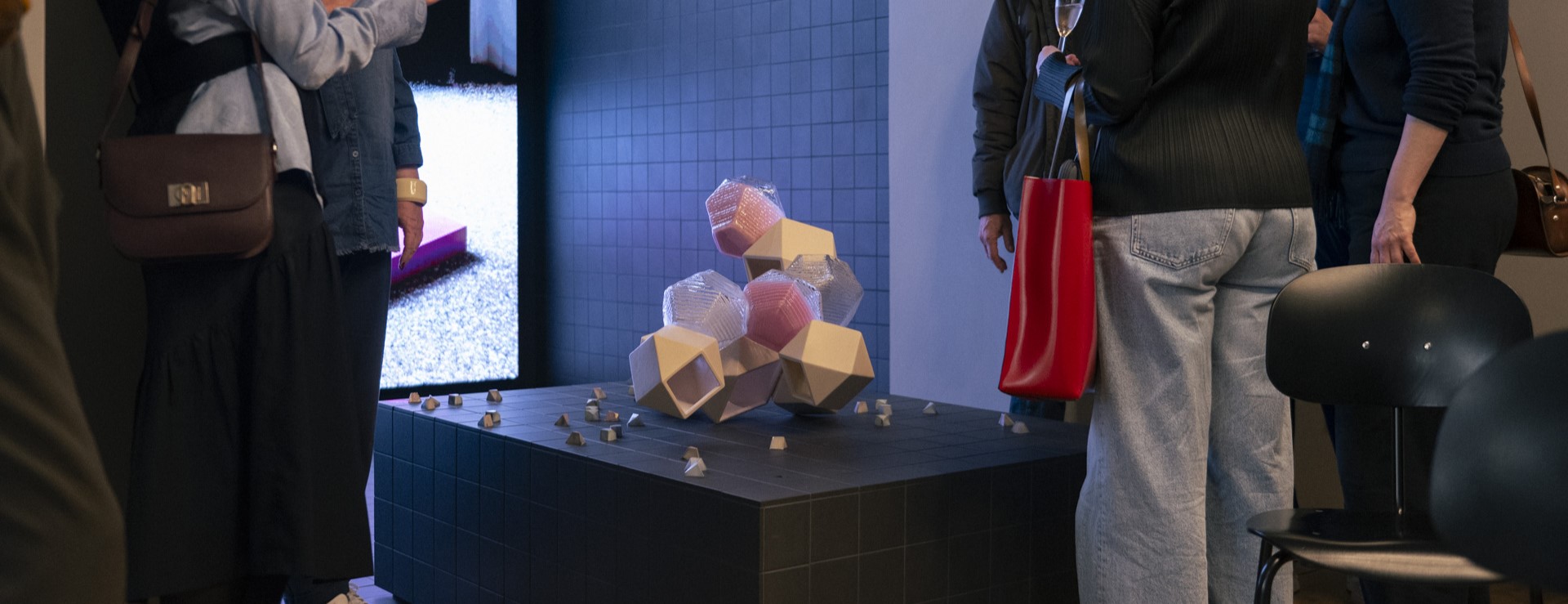 Im Anschluss an den Talk gab es die Möglichkeit, Kristiane Kegelmann in einem persönlichen Gespräch kennenzulernen, ebenso wie ihre Pralinen. Präsentiert wurden diese zusammen FREEZE AND CLAY, einer Skulptur von MuDD Architects, die erstmalig im Rahmen der Architekturbiennale 2023 im prächtigen Rahmen des Palazzo Bambolo in Venedig präsentiert wurde und zwei der ältesten Materialien, Keramik und Glas, in ihren Mittelpunkt rückt.