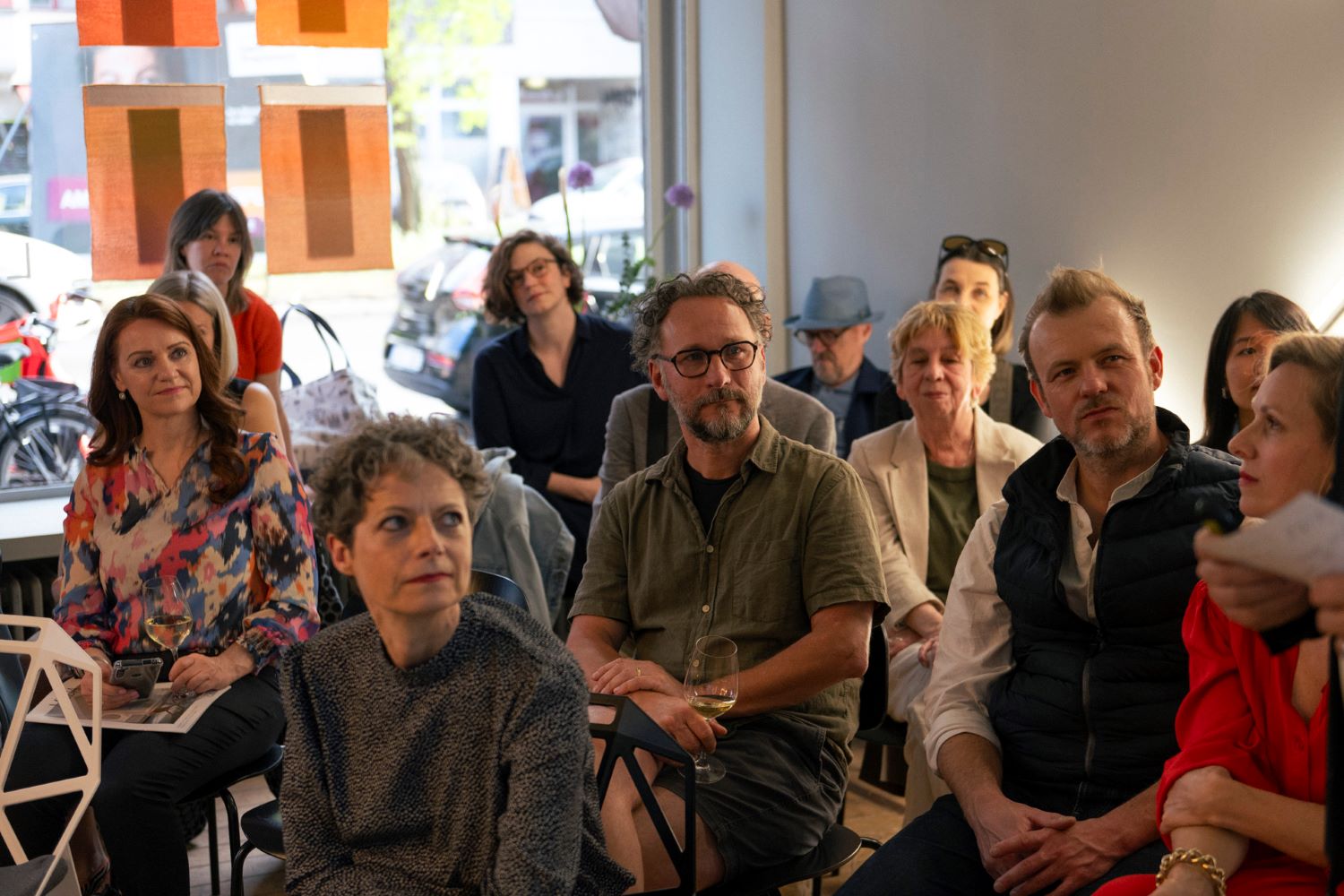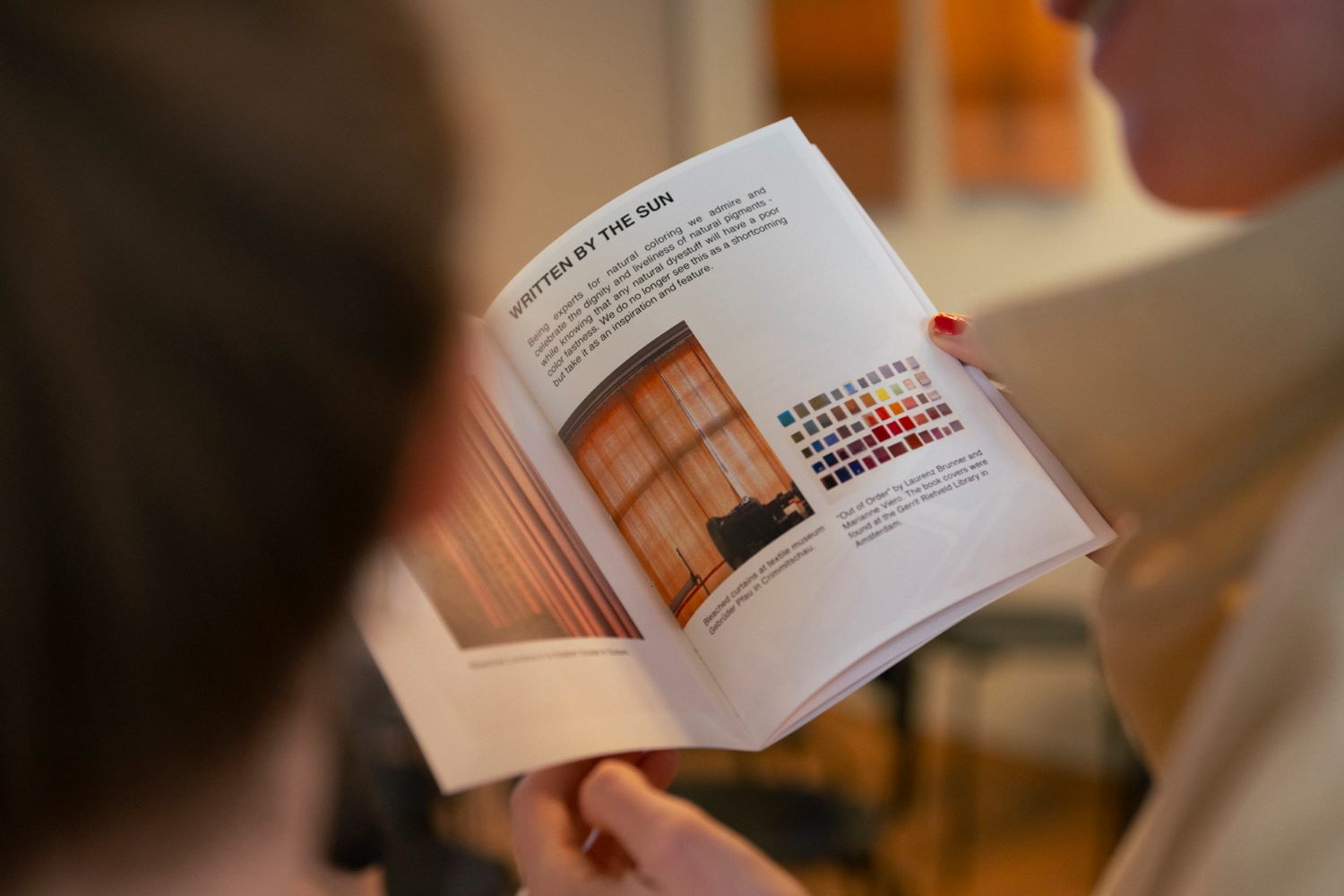 Als „geschrieben von der Sonne“ präsentieren Sarah Meyers und Laura Fügmann an diesem Abend und in den kommenden Monaten im LAUFEN space Berlin ihre Installation SLOW PATTERNS Textilien, deren Aussehen sich im Laufe der Zeit durch die Einwirkung des Sonnenlichts verändert. Entwickelt mit einer undogmatischen Technik, die sowohl das Natürliche als auch das Künstliche umfasst, kombinieren Slow Patterns natürlich gefärbte Woll- und synthetisch gefärbte Acrylgarne. Wenn das Textil dem UV-Licht ausgesetzt wird, verblassen die natürlichen Farbstoffe, während die stabilen synthetischen Farben ihre Schattierungen beibehalten und so sanft mit der Zeit ein Muster enthüllen. Das Ergebnis ist nur wesentlich beeinflussbar.