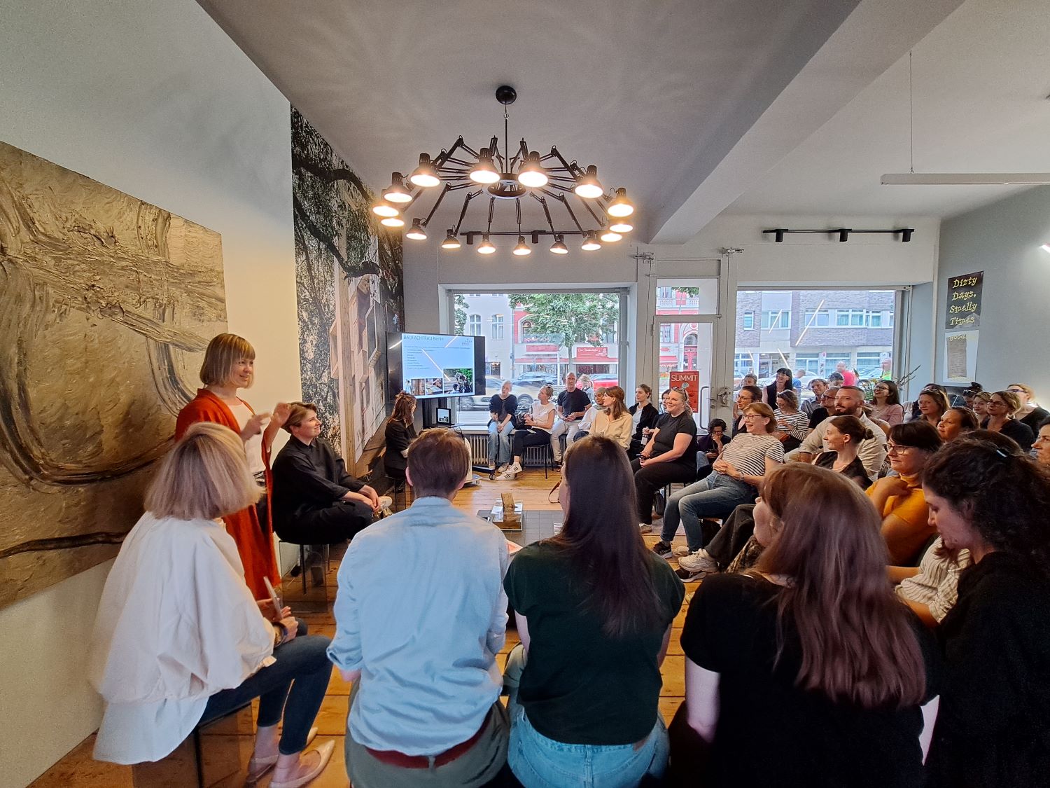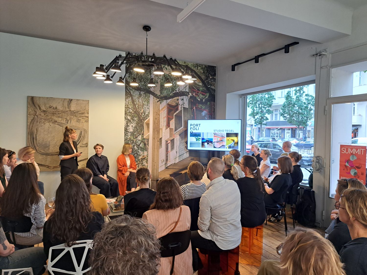 Lisa Templiner zeigte anhand der Arbeit von Studio Tegel, wie hochwertige Innenräume und Möbel aus gebrauchten Materialien entstehen können – funktional, gestalterisch präzise und ökologisch konsequent gedacht. Maren Teichert führte in die Bildungs- und Netzwerkarbeit von Baufachfrau Berlin ein, die Fachkräfte aus Handwerk, Architektur und Pädagogik zusammenbringt und neue Wege für klimabewusstes Bauen aufzeigt.