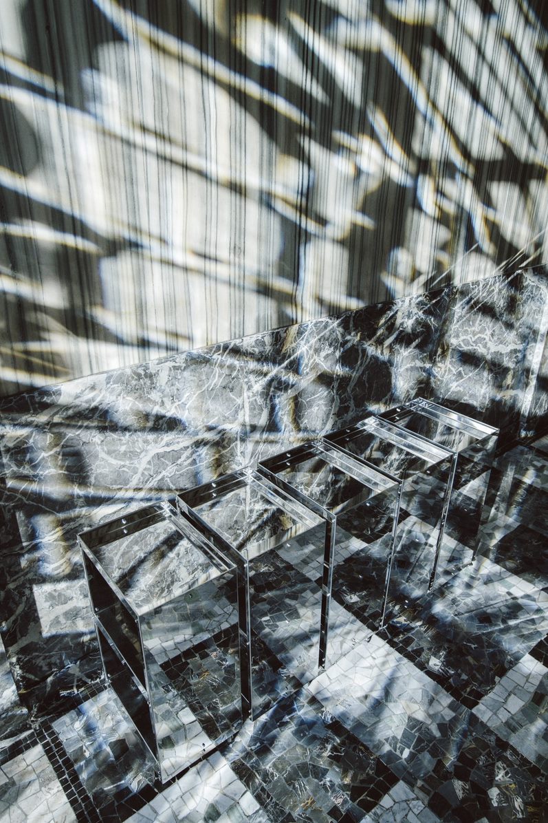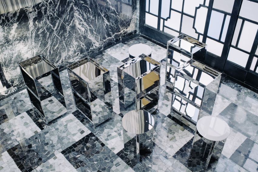 On the one hand, the material-focused, pure and multi-faceted stainless steel objects by NM3 are presented in a setting with the classical Milanese architecture and in dialogue with details of the famous ingressi, the elegant marble entryways of Milan’s most iconic buildings.