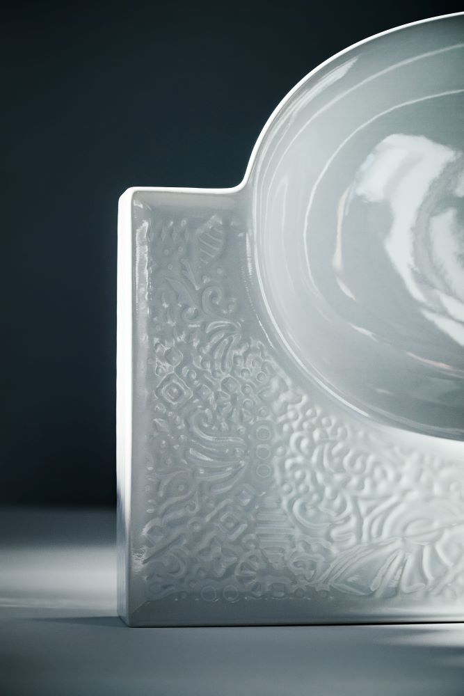 The washbasins of The New Classic collection, characterized by its soft and sinuous lines and made in Saphirkeramik, are embellished thanks to three new patterns created by Marcel Wanders. The new Reliefs, Bohemian, Ornamental and Cosmopolitan are a further step forward in the individualization of the ultra-thin and resistant ceramic material developed by LAUFEN.