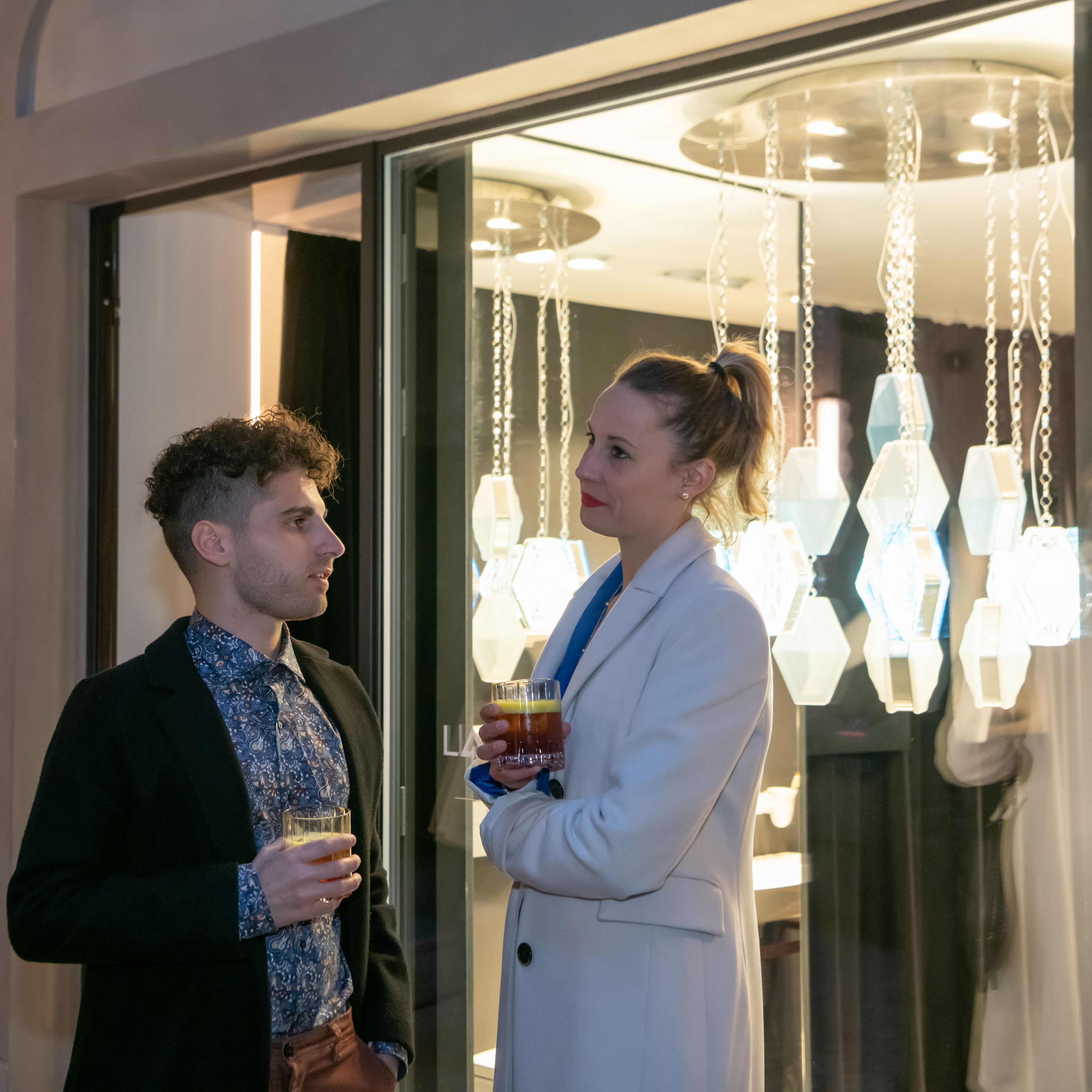 Two other objects are as well part of the Milan exhibition “How dare you”: For the first time LAUFEN presents the Falconnier Chandelier, a unique piece also created by Marcel Wanders and a tribute to the 19th century architect Gustave Falconnier, inventor of the "briques de verre".