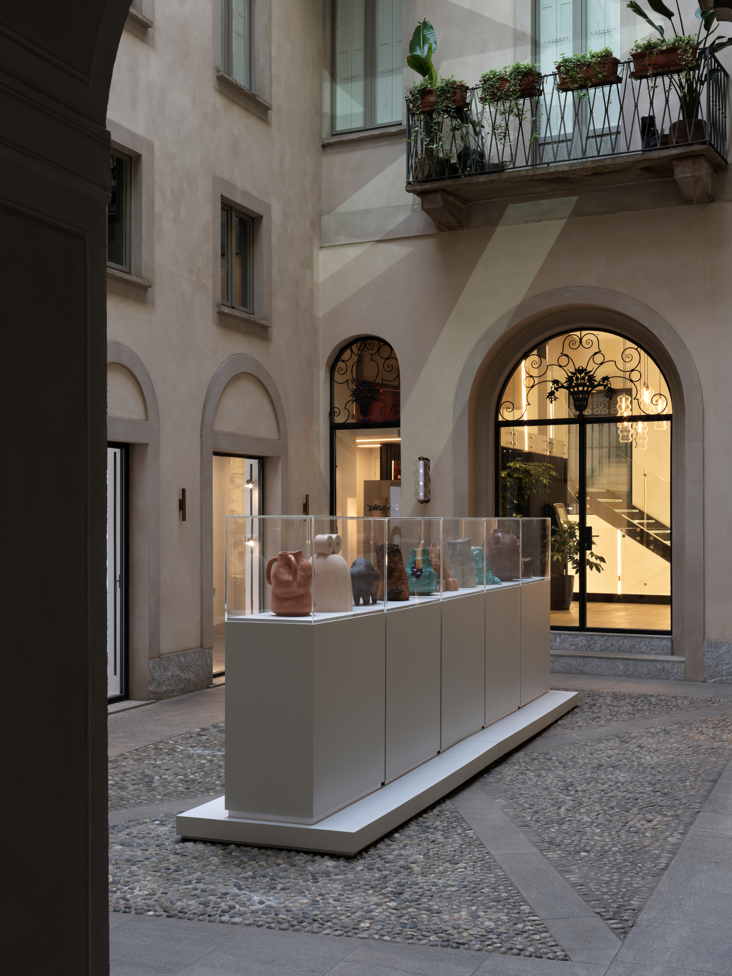 Step into the courtyard where ten unique pieces from Roberto Sironi and Luca Mandaglio explore historic colour palettes, celebrating cultural richness.